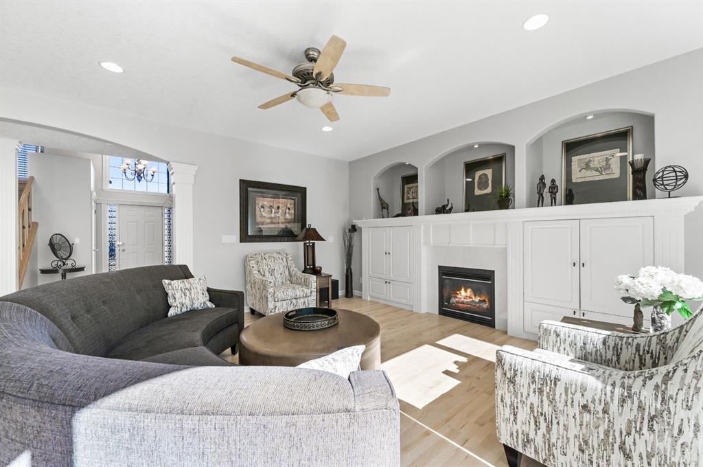 Welcome to your new home in the heart of Strathcona. A picturesque location backing directly onto a beautifully treed area with a very private and stunning south facing backyard for all the peace and quiet you could want! Close to all levels of schools including the celebrated Dr. Roberta Bondar elementary, shopping, walking paths, greenspace, recreation centres, LRT, and the commuter roads to get you wherever you need to be in minutes! This home has been lovingly maintained by the original owners and offers 4 bedrooms, 4 bathrooms and more than 3700 sqft of beautifully appointed and cared for living space. The bright and open main level has spacious kitchen with walk through pantry to the mudroom and laundry area, dining room, and cozy family room with gas fireplace and patio doors to the huge deck overlooking the yard and trees. Upper level includes a spacious primary bedroom with walk in closet and full ensuite with heated floors plus two additional bedrooms. The walkout lower level has a bedroom, full bath, and a large recreation and games area with custom built-ins, gas fireplace, pool table (included), plus easy access to the covered lower patio to really enjoy your private yard and natural area. The many features and upgrades include central air conditioning on the upper level, energy efficient solar panels, custom exterior house illumination, heated oversized double attached garage, irrigation system, gas line for BBQ or fire tables on upper and lower decks, and even a convenient laundry chute! This part of the city has evolved to be THE place to be, with continually expanding lists of restaurants, schools and businesses choosing the southwest hill.