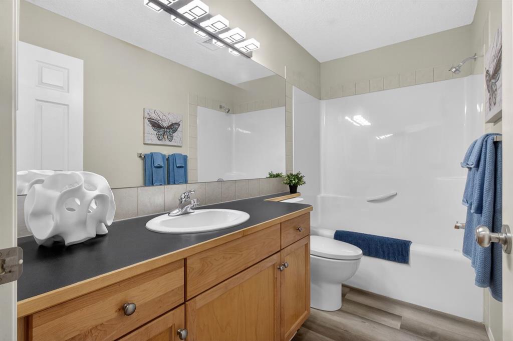 This outstanding opportunity awaits you in the desirable community of Evergreen. This beautifully maintained, south-facing corner lot home truly offers exceptional value, comfort, and lifestyle. Backing directly onto an unspoiled green belt and walking paths, this property provides privacy and a serene setting. It features new 50-year shingles (May 2025), central air conditioning, freshly painted throughout with a heated double attached garage, and full insulation for year-round comfort. The basement is unspoiled and ready for your personal touch. The main floor offers a bright open-concept layout with spacious living and dining areas, knockdown ceilings throughout, and a cozy gas fireplace, perfect for everyday living and entertaining. The kitchen is both functional and inviting, complete with maple cabinetry, a raised breakfast bar, and a convenient walk-through pantry, main floor laundry with 2pc powder room. Upstairs, you’ll find brand-new vinyl plank flooring, a huge bonus room, and a desk area. Three generously sized bedrooms. The primary retreat is a true highlight, featuring a large walk-in closet and a beautiful 3-piece ensuite, creating a private and relaxing escape. Step outside to enjoy the sunny south-facing backyard, finished with maintenance-free composite decking and frosted glass privacy railings, ideal for summer evenings and outdoor gatherings. With its premium corner lot location, with plenty of extra parking, green space backing, extensive upgrades, and move-in-ready condition, this home is a rare find and a fantastic opportunity.