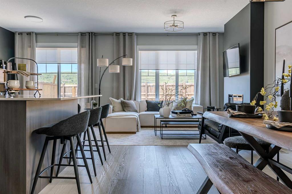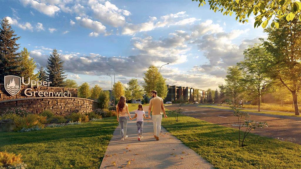 Welcome to the Mackenzie 22′ by Partners Homes. This 1,985 sq. ft. paired home with a front-attached garage is located in the desirable northwest community of Upper Greenwich and offers a smart layout, modern finishes, and full new home warranty coverage. Designed with functionality and long-term comfort in mind, this home is well suited for families and professionals looking for low-maintenance living in a growing community. The main floor features a bright, open-concept layout with 9 ft. ceilings and quality finishes throughout. The kitchen includes upgraded cabinetry, quartz countertops, a full-height backsplash, stainless steel appliances, a gas cooktop, and a chimney-style hood fan. The living and dining areas flow seamlessly for everyday living and entertaining and are anchored by an electric fireplace. The rear deck extends the living space outdoors. Upstairs, a central bonus room offers flexible space for a home office, media room, or play area. The primary suite features a walk-in closet and a well-appointed ensuite with tiled shower walls, dual sinks, quartz countertops, and thoughtfully selected finishes. Two additional bedrooms, an upgraded main bathroom, and a convenient upper-floor laundry room complete this level. Additional features include air conditioning rough-in, a black plumbing and lighting package, and an undeveloped sunshine basement that brings in natural light and provides future development potential. Interior and exterior details include fiber-cement siding with stone accents, exposed aggregate entry, front yard landscaping, soft-close cabinetry, quartz throughout, knockdown ceilings, pot lighting, a humidifier, tankless hot water heater, and an enhanced sound-dampening party wall system for added privacy. Upper Greenwich offers an exceptional northwest location surrounded by walking paths, green spaces, playgrounds, and sports courts. Residents enjoy quick access to the Bow River pathway system, Calgary Farmers’ Market West, WinSport, nearby retail and services, and future community amenities. The Mackenzie 22′ delivers a well-balanced combination of design, practicality, and location in one of Calgary’s most appealing new northwest communities.