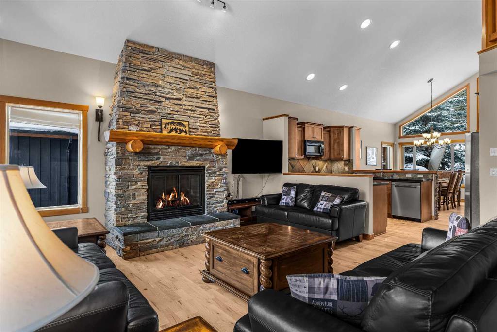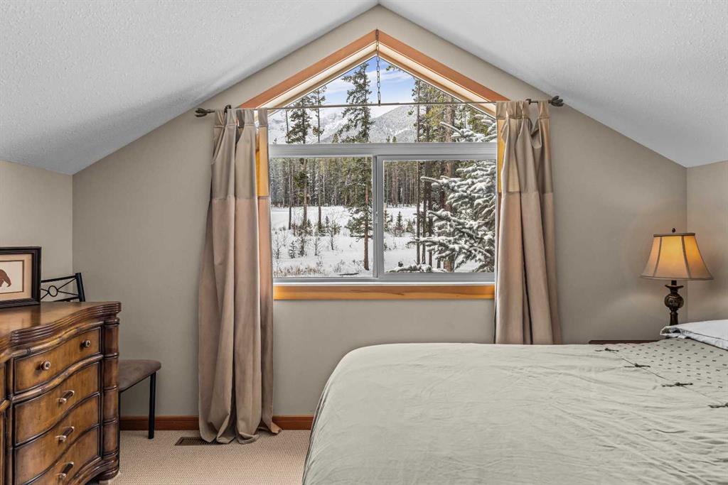 Situated in the picturesque Three Sister Mountain Village, this semi-detached home presents a spacious layout with four bedrooms and four bathrooms, including two primary bedrooms, offering ample space and privacy ideal for a family or multiple guests. Nestled on a tranquil mountain street, residents are treated to the serene beauty of the surrounding landscape through generous large windows and open spaces that frame breathtaking mountain views. The home is in immaculate shape, featuring hardwood floors that add warmth and elegance throughout the living spaces, complemented by granite countertops in the kitchens and bathrooms that blend durability with luxury. An open concept design further enhances the sense of space and flow, seamlessly integrating indoor and outdoor living. This property combines practicality with luxury, making it an ideal choice for those seeking a harmonious blend of comfort, elegance, and scenic tranquility in a tranquil mountain setting. This home has a large double car garage and ample storage, ideal for all sports equipment.