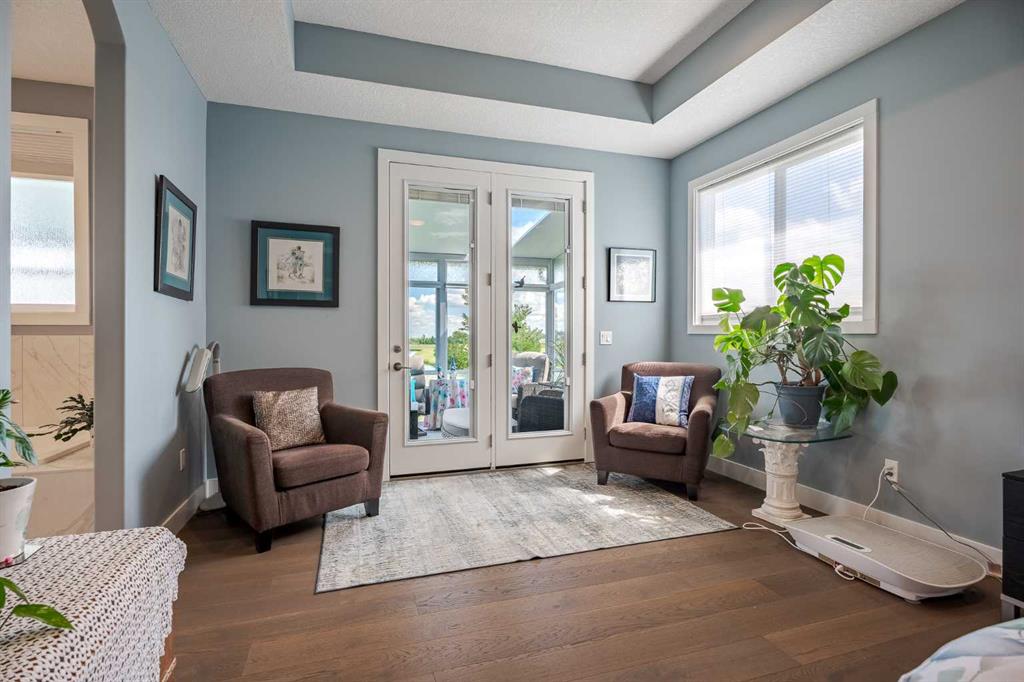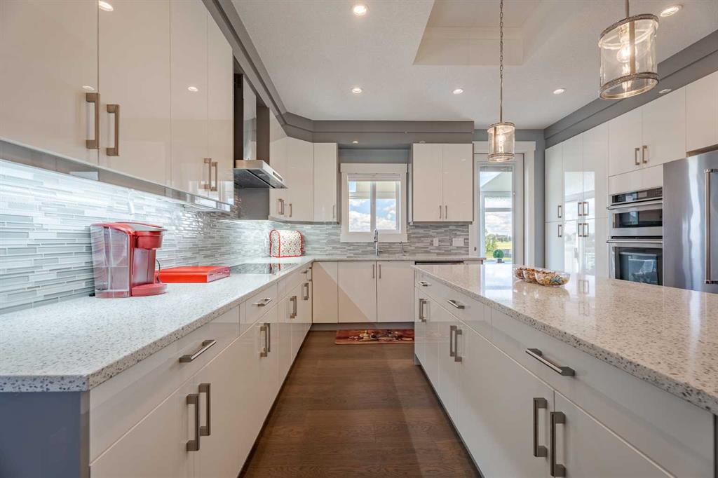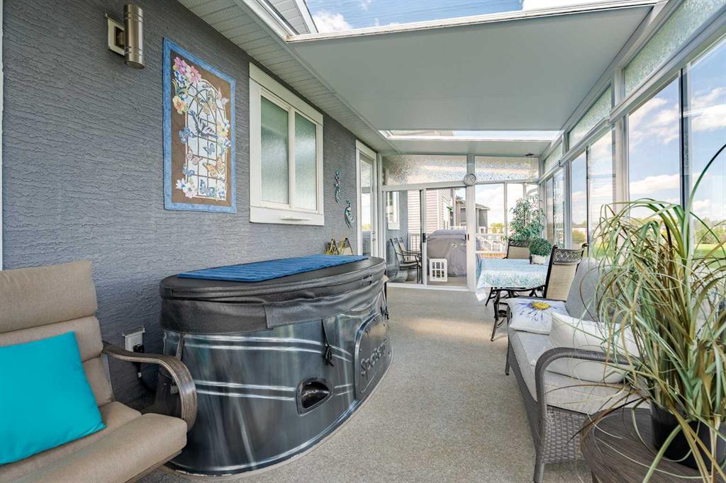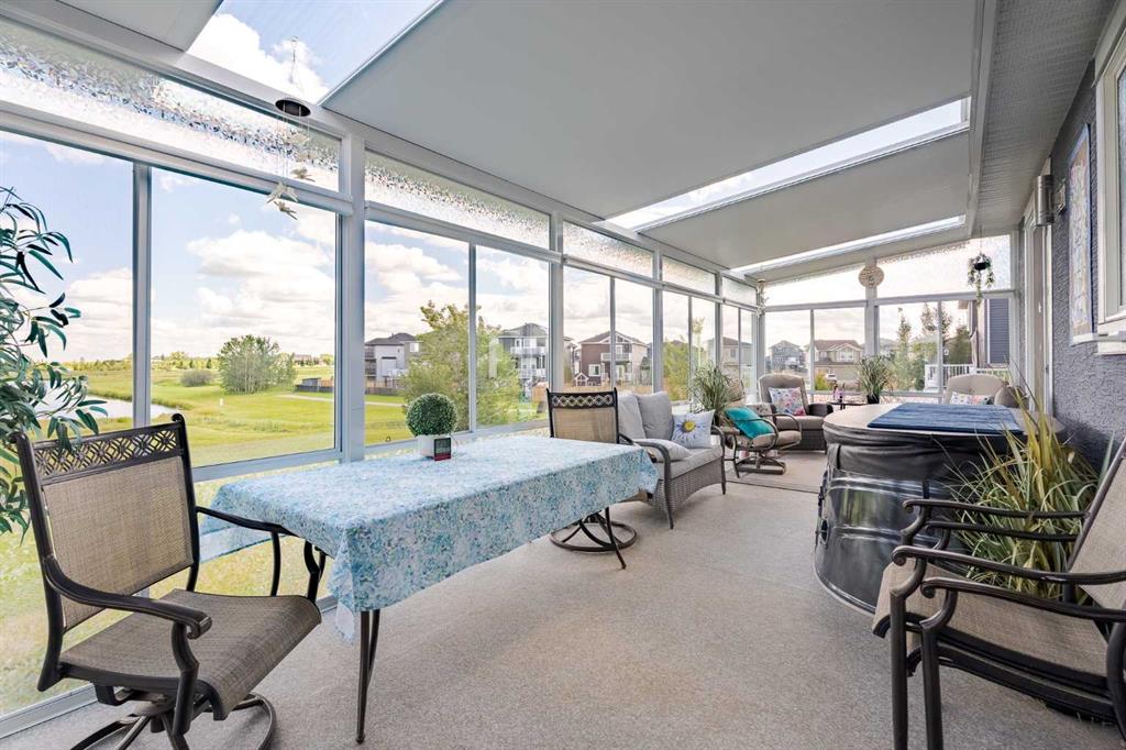 EXECUTIVE WALKOUT BUNGALOW BACKING ONTO POND/PFR + 3 CAR GARAGE, SOLAR PANELS, SUNROOM. This executive style 4 bedroom bungalow with 3 car garage backing onto green space will tick all your boxes! The open floor plan is perfect for entertaining or family gatherings. Enter to the main living area with beautiful hardwood floors, a tray ceiling and a gas fireplace. The heart of this home is no doubt it’s bright chef’s kitchen with an abundance of cupboards and counter space and a quartz island large enough to seat 4. High end KitchenAid appliances include an induction cooktop, built-in microwave, built-in oven, refrigerator and dishwasher(2025). Retreat to the private primary spacious bedroom with a large sitting area, huge walk-in closet and a luxurious 5 piece spa like ensuite. The laundry room, second bedroom/office with cheater door to a full bathroom complete the main floor. Head down to the amazing walk out basement with a great TV area, bar area, 2 bedrooms, a 5 piece bathroom and a dedicated workshop area. Whether you’re woodworking, repairing, crafting, or tackling home projects, this workshop provides the convenience of working from home without sacrificing comfort or storage space. Relax and unwind in the stunning sunroom, perfectly positioned to capture the views of the green space and a tranquil pond. Bathed in natural light through expansive windows, this inviting space is ideal for morning coffee, reading, or simply soaking in nature’s beauty year-round. The peaceful backdrop creates a private, calming retreat right in your own home. Not to mention the energy-efficient fully owned solar panel system. Designed to reduce utility costs and environmental impact, the solar array blends seamlessly with the home’s style while delivering year-round savings. This home is truly one of a kind with its 3 car garage, basement workshop, A/C, 3 season additional sunroom, hot tub, water softener, solar panels and backing onto a green space.