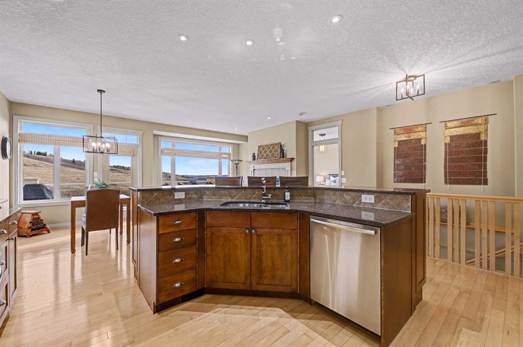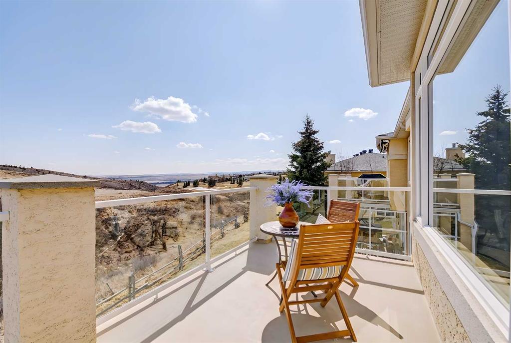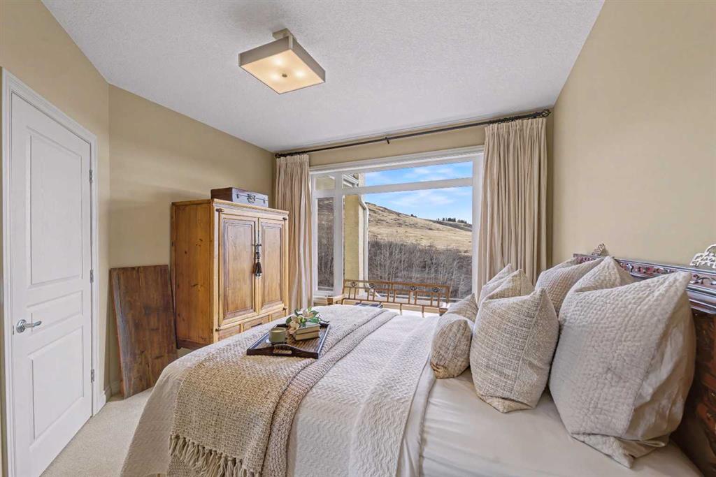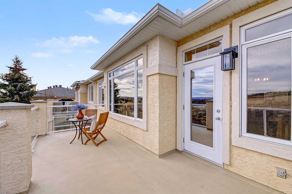 Welcome to the GOLF COMMUNITY OF GLENEAGLES. Are you ready to DONATE THE LAWNMOWER and THROW AWAY THE SNOW SHOVEL? No need for them here! Have you been waiting for a SPACIOUS WALKOUT BUNGALOW VILLA and hoping for a location with a DRAMATIC RAVINE VIEW (FROM BOTH LEVELS)? Would it make RV travelling easier if you could LOAD UP YOUR RV ON the DRIVEWAY (which is close to 40′ long)? If you say yes, then come see unit #149 at ‘Glenhaven’. Backing on the ridge, with a view TOWARD THE RAVINE, and the GOLF COURSE, and the MOUNTAINS! From the time you pull into this villa development you will feel enveloped by natural surroundings. Welcome home as you pull into your IMMACULATE DOUBLE ATTACHED GARAGE with EPOXY FLOORING (ALSO insulated, drywalled, painted, AND including a workbench with built-in power plugs). Now STEP IN THE FRONT DOOR and you will immediately appreciate the TASTEFUL DECOR and THOUGHTFUL DESIGN of this floorplan! Impeccable HARDWOOD FLOORING, 9′ CEILINGS, KNOCKDOWN TEXTURE, and UP-SIZED WINDOWS THROUGHOUT, plus a generous addition of LIGHT-TRANSFERRING INTERIOR TRANSOM WINDOWS! From the front entry, the dining room is on your left and the office on your right. The FRONT OFFICE with DOUBLE FRENCH DOORS could double as a quiet TV room (or even a second bedroom). Host your dinner guests in your inviting and elegant formal dining room! The kitchen is outstanding! With a LARGE CENTRAL ISLAND (featuring double-sided cabinetry), GRANITE COUNTERS, STAINLESS STEEL appliances and PRISTINE MAPLE cabinets in WARM CINAMMON tones. From the breakfast nook, sip your coffee and drink in EXPANSIVE VIEWS to the hillside above and the ravine below. In the winter, you can cozy up in your LIVING ROOM to a GAS FIREPLACE, with stylish columns and a mantle to match the kitchen cabinets. Or in the summer, step outside to barbeque your dinner on the SPACIOUS UPPER DECK with vinyl flooring (plus aluminum railing with glass inserts to maximize the view)! After a busy day at work or play, you can unwind and relax in your own SPA-LIKE ENSUITE! This ensuite is truly beautiful with a fully tiled corner shower siding onto a deep soaker tub (with one step up for easy access)! INCREDIBLE PRIVACY from your primary bedroom, with no other homes in your sightline, or any walking path behind. Let’s head DOWNSTAIRS to your FINISHED WALKOUT BASEMENT with a RARE AND TRULY BRILLIANT APPROACH TO IN-FLOOR HEAT! This basement’s concrete floor has perimeter furnace vents in the slab, just like your main level! True story! This perimeter in-slab heat system, plus your 2nd fireplace in the basement will keep the lower level feeling just like upstairs. The spacious basement level includes another bedroom and full bathroom, huge rec room and large storage area. The rec room includes a gorgeous brick-faced fireplace, arch detailing, raised hearth. Step outside to a lower patio, covered by the upper walkout deck. So many more exquisite features. Book your showing today!