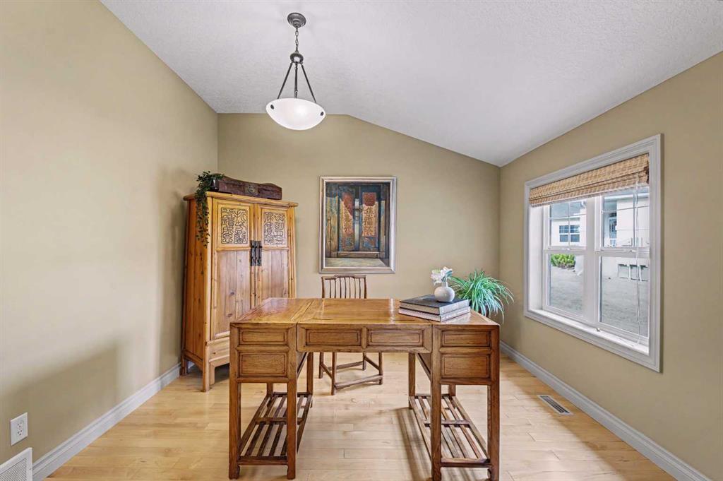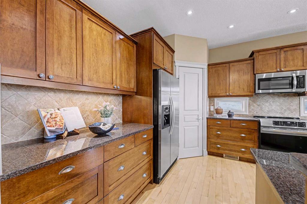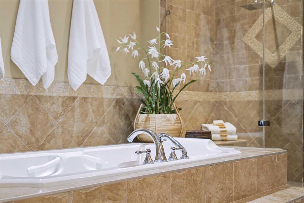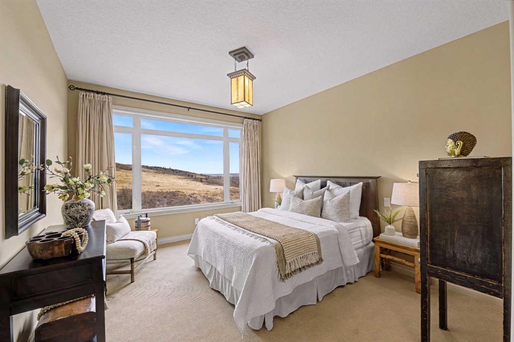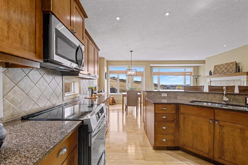 Welcome to the GOLF COMMUNITY OF GLENEAGLES. Are you ready to DONATE THE LAWNMOWER and THROW AWAY THE SNOW SHOVEL? No need for them here! Have you been waiting for a SPACIOUS WALKOUT BUNGALOW VILLA and hoping for a location with a DRAMATIC RAVINE VIEW (FROM BOTH LEVELS)? Would it make RV travelling easier if you could LOAD UP YOUR RV ON the DRIVEWAY (which is close to 40′ long)? If you say yes, then come see unit #149 at ‘Glenhaven’. Backing on the ridge, with a view TOWARD THE RAVINE, and the GOLF COURSE, and the MOUNTAINS! From the time you pull into this villa development you will feel enveloped by natural surroundings. Welcome home as you pull into your IMMACULATE DOUBLE ATTACHED GARAGE with EPOXY FLOORING (ALSO insulated, drywalled, painted, AND including a workbench with built-in power plugs). Now STEP IN THE FRONT DOOR and you will immediately appreciate the TASTEFUL DECOR and THOUGHTFUL DESIGN of this floorplan! Impeccable HARDWOOD FLOORING, 9′ CEILINGS, KNOCKDOWN TEXTURE, and UP-SIZED WINDOWS THROUGHOUT, plus a generous addition of LIGHT-TRANSFERRING INTERIOR TRANSOM WINDOWS! From the front entry, the dining room is on your left and the office on your right. The FRONT OFFICE with DOUBLE FRENCH DOORS could double as a quiet TV room (or even a second bedroom). Host your dinner guests in your inviting and elegant formal dining room! The kitchen is outstanding! With a LARGE CENTRAL ISLAND (featuring double-sided cabinetry), GRANITE COUNTERS, STAINLESS STEEL appliances and PRISTINE MAPLE cabinets in WARM CINAMMON tones. From the breakfast nook, sip your coffee and drink in EXPANSIVE VIEWS to the hillside above and the ravine below. In the winter, you can cozy up in your LIVING ROOM to a GAS FIREPLACE, with stylish columns and a mantle to match the kitchen cabinets. Or in the summer, step outside to barbeque your dinner on the SPACIOUS UPPER DECK with vinyl flooring (plus aluminum railing with glass inserts to maximize the view)! After a busy day at work or play, you can unwind and relax in your own SPA-LIKE ENSUITE! This ensuite is truly beautiful with a fully tiled corner shower siding onto a deep soaker tub (with one step up for easy access)! INCREDIBLE PRIVACY from your primary bedroom, with no other homes in your sightline, or any walking path behind. Let’s head DOWNSTAIRS to your FINISHED WALKOUT BASEMENT with a RARE AND TRULY BRILLIANT APPROACH TO IN-FLOOR HEAT! This basement’s concrete floor has perimeter furnace vents in the slab, just like your main level! True story! This perimeter in-slab heat system, plus your 2nd fireplace in the basement will keep the lower level feeling just like upstairs. The spacious basement level includes another bedroom and full bathroom, huge rec room and large storage area. The rec room includes a gorgeous brick-faced fireplace, arch detailing, raised hearth. Step outside to a lower patio, covered by the upper walkout deck. So many more exquisite features. Book your showing today!