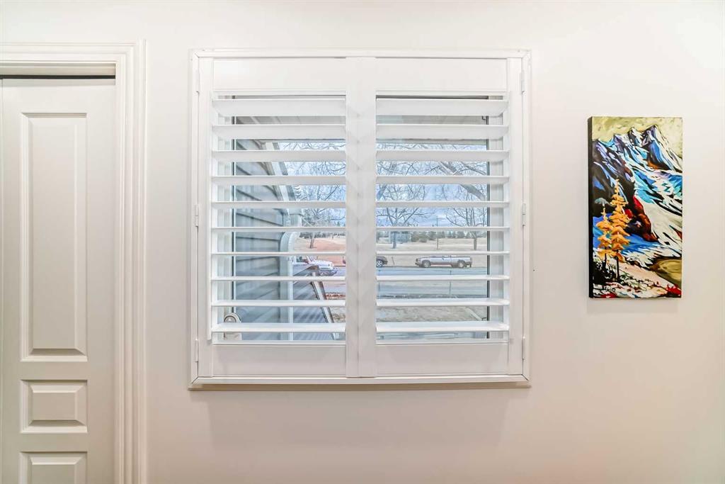 The kitchen has been fully updated with professionally painted Benjamin Moore cabinetry, boxed enclosures to the ceiling, upgraded black fixtures, and newer stainless steel appliances, including a Samsung OTR microwave, French-door refrigerator, and slide-in convection stove. The home also features new luxury vinyl plank flooring throughout, hexagon and French inspired subway tile accents, fresh Benjamin Moore paint, and three stunning feature walls that add warmth and charm. Additional upgrades include new toilets, hardware, lighting, blinds, plantation shutters, and a Phantom screen leading to the main floor deck. A cozy gas fireplace anchors the main living area, creating a warm and inviting space perfect for relaxing or entertaining.