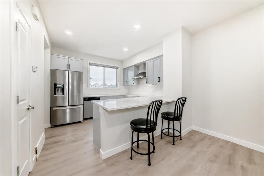 Welcome to this BEAUTIFULLY crafted 3-BEDROOM HOME with a SEPARATE SIDE ENTRANCE, offering a RARE OPPORTUNITY in the highly sought-after community of Rangeview. DESIGNED with contemporary ARCHITECTURE and REFINED FINISHES, this home delivers a bright, open-concept layout tailored for modern living. The main floor is elevated by SOARING 9’ ceilings and DURABLE LUXURY VINYL PLANK flooring, creating a seamless and sophisticated flow between the living and dining spaces, perfect for both everyday comfort and effortless entertaining. At the heart of the home, the chef-inspired kitchen impresses with full-height, soft-close cabinetry, elegant quartz countertops, and a premium stainless steel appliance package, including a chimney hood fan and a built-in microwave. A spacious pantry with custom-built-in shelving enhances both function and organization while maintaining a clean, streamlined aesthetic. Upstairs, the primary suite is thoughtfully designed for comfort and privacy, featuring a walk-in closet with custom built-in organizers and a sleek 3-piece ensuite highlighted by a beautifully tiled shower. Two additional bedrooms offer versatility for family, guests, or a home office, each complete with custom closet systems. A stylish 4-piece main bathroom and a convenient upper-level laundry area complete the upper floor with everyday ease. The unfinished basement, complemented by a separate side entrance, presents exceptional future potential ideal for additional living space or income-generating opportunities. A beautiful walkway to the side entry adds both durability and convenience. This home continues to impress outdoors and with its added features. Enjoy a fully fenced and beautifully landscaped backyard, complete with a spacious deck and sleek aluminum railings, perfect for summer gatherings and outdoor relaxation. The property also features an oversized garage with over 10-foot ceiling height, offering excellent space for larger vehicles, storage, or future customization. To ensure year-round comfort, the home is equipped with air conditioning, keeping you cool during Calgary’s warm summer months. Rangeview offers the perfect balance of tranquillity and connectivity. Surrounded by parks, pathways, and green spaces, the community promotes an active outdoor lifestyle while keeping you within easy reach of major routes, shopping, and essential amenities. This is the PERFECT HOME you have been DREAMING OF, OFFERING the LIFESTYLE YOU TRULY DESERVE. CALL your Realtor NOW to SCHEDULE YOUR PRIVATE SHOWING BEFORE it’s GONE !!!