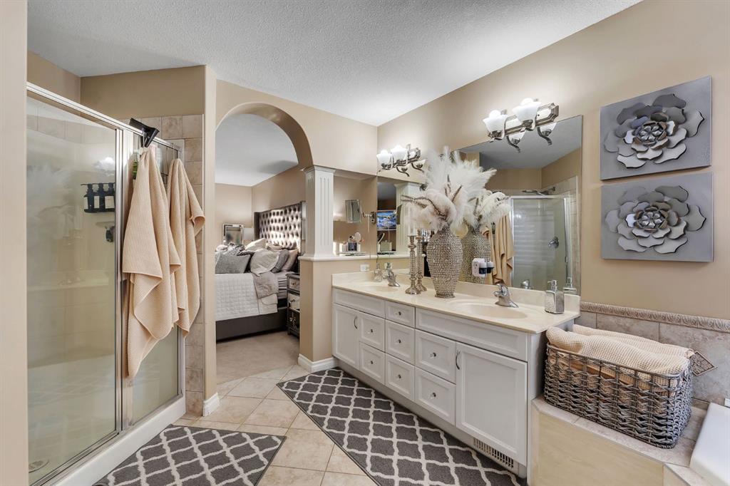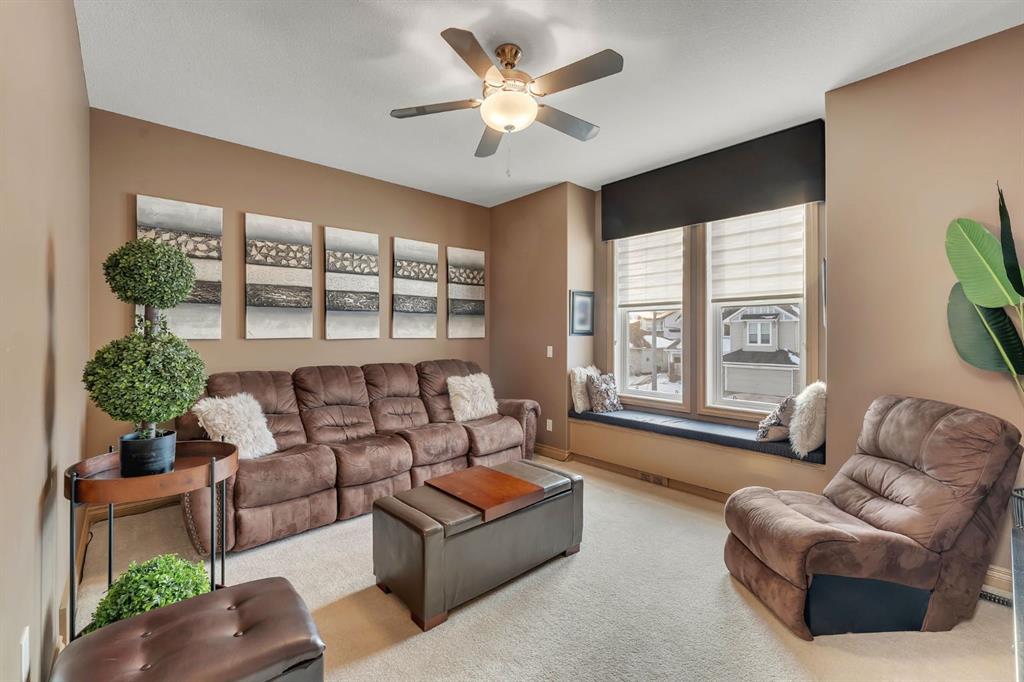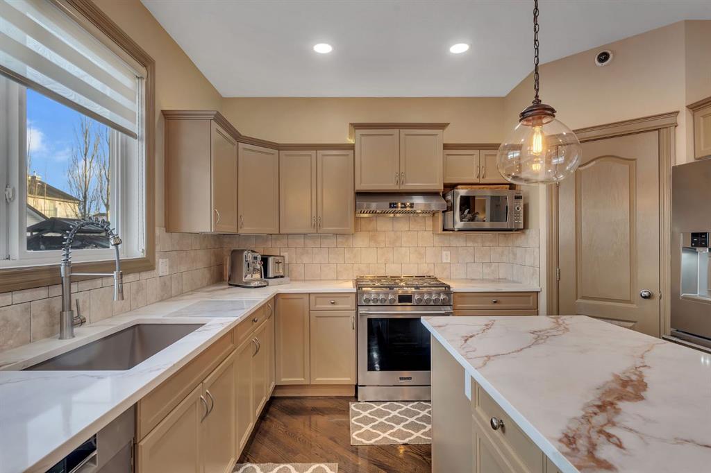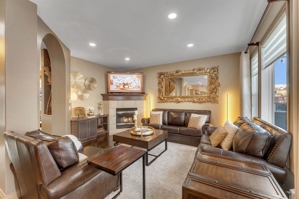 Welcome to this stunning former show home in the heart of Chestermere, proudly offered by the original owners and impeccably maintained throughout. From the moment you arrive, you’ll notice the extended concrete driveway offering extra parking, professionally installed LED front trim lighting, a charming front deck ideal for morning coffee, and low-maintenance, high-grade professional turf in both the front and backyard. Underground sprinklers service all flower beds for added convenience.