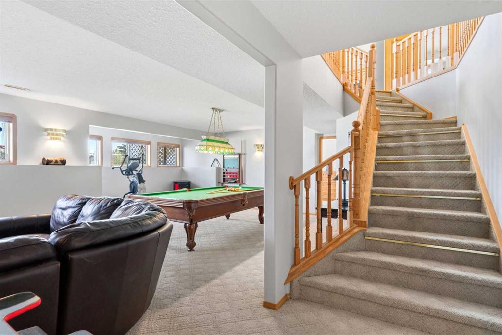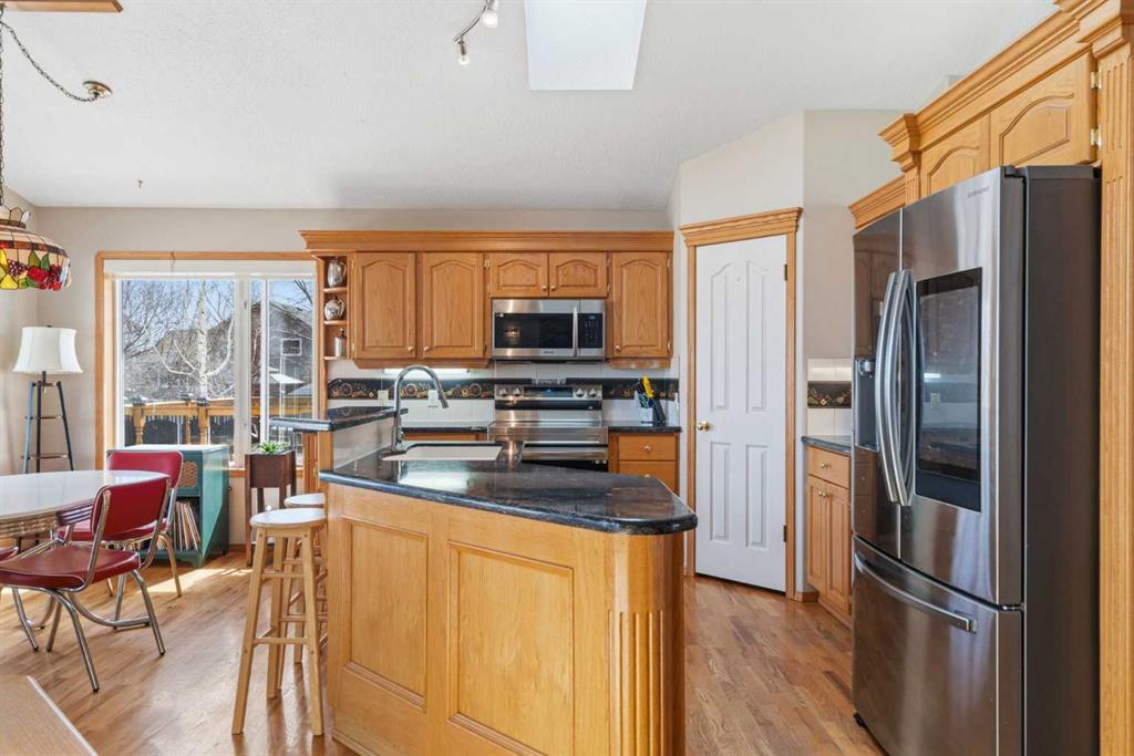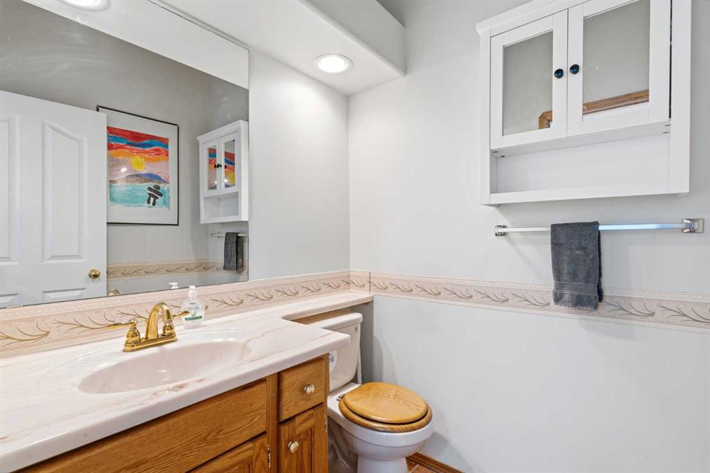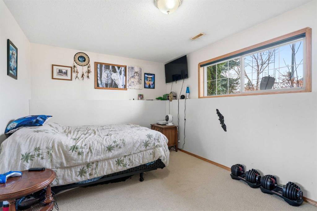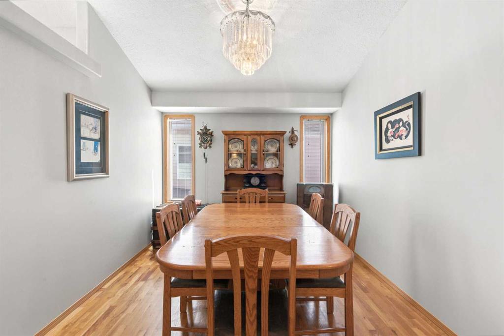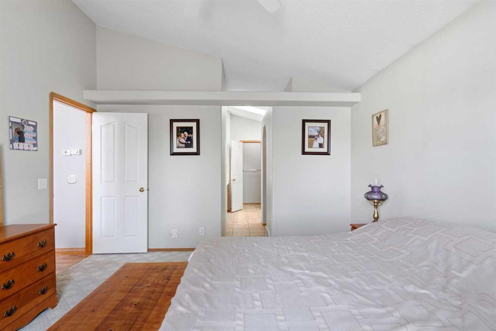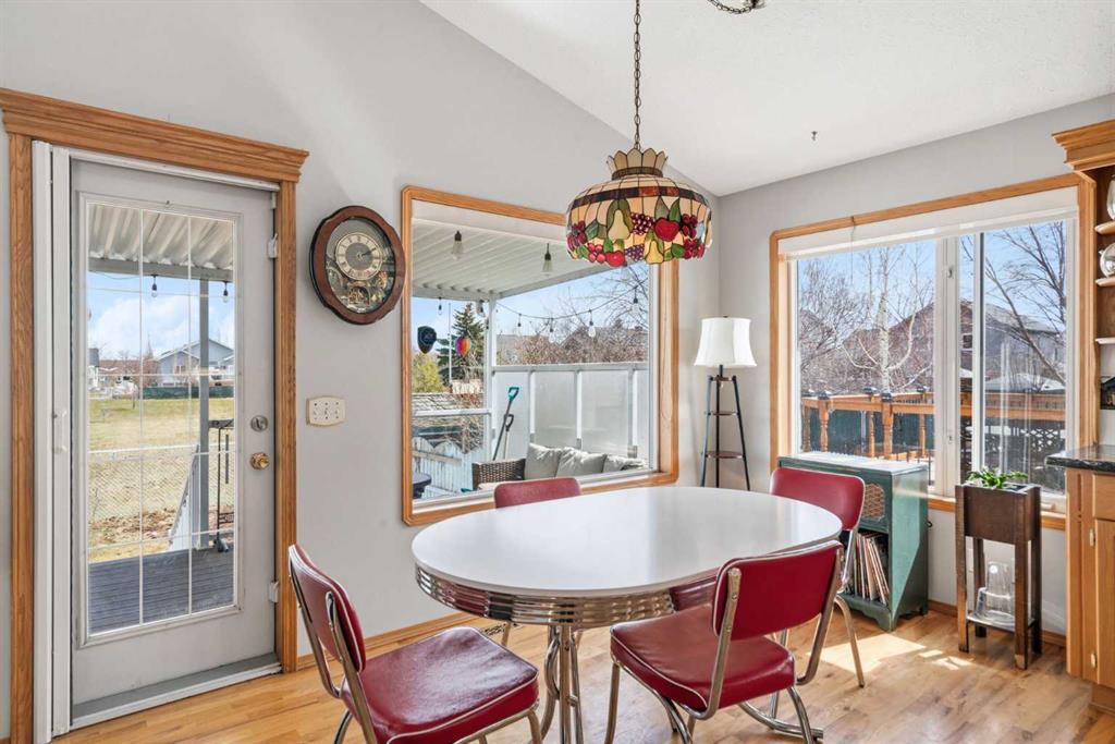 Welcome to this exceptional raised bungalow in the sought after community of Cambridge Glen in Strathmore, an ideal home for the discerning buyer seeking space, quality & a truly special setting. Backing directly onto a massive green space & park, this beautifully maintained & updated residence offers 1,482 sq. ft. above grade & 1,298 sq ft of professional development in the lower level, delivering outstanding functionality for families of all sizes. From the moment you arrive, the home’s curb appeal, featuring stone trim detail & an oversized, double-attached garage with direct interior access & thoughtful built-in storage, sets the tone for what lies within. Inside, the bright, open concept layout greets you, enhanced by soaring vaulted ceilings, new skylights, solid hardwood flooring & expansive windows that flood the home with natural light. The main floor is designed for both everyday comfort & elegant entertaining. A stunning great room features a cozy gas fireplace & a full wall of windows overlooking the park behind, while a formal dining room with artistic pillar detailing adds a touch of sophistication. The spacious kitchen is well appointed with granite countertops, newer stainless steel appliances, including a side-by-side fridge with front display, ample solid oak cabinetry, a central island with a raised eating bar, a corner walk-in pantry & an adjacent spacious nook area surrounded by windows. The primary suite is a true retreat, showcasing vaulted ceilings, a spacious walk-in closet & a luxurious 4 piece ensuite complete with a deep soaker tub, plus a separate shower & water closet area. A second main floor bedroom, also ideal as a home office, along with convenient main floor laundry enhances the home’s versatility. The raised bungalow design & oversized windows make the lower level incredibly bright & inviting, offering incredible additional living space. Here you’ll find three generous bedrooms, a large recreation and games area (perfect for a pool table or movie nights), a full 3-piece bathroom & abundant additional storage. Step outside to your private backyard oasis. The covered composite deck overlooks a beautifully landscaped, fully fenced yard that seamlessly extends into the expansive park / green space beyond, connecting you to many parks including Dinosaur Hill – an unbeatable setting for families, entertaining, or simply enjoying the outdoors. This home has been meticulously maintained & thoughtfully upgraded. Updates include new shingles (2025), fresh interior paint (2026), newer appliances, furnace serviced & air ducts cleaned(2025), water tank (2023), updated skylights (2023), removal of all Poly-B plumbing, central A/C, central vacuum & underground irrigation. With five bedrooms, 2.5 bathrooms, multiple living & entertaining spaces, plus a premium park location, this home offers an exceptional balance of luxury, practicality & lifestyle. Close to schools, pathways, recreation facilities, shopping, hospital, golf course