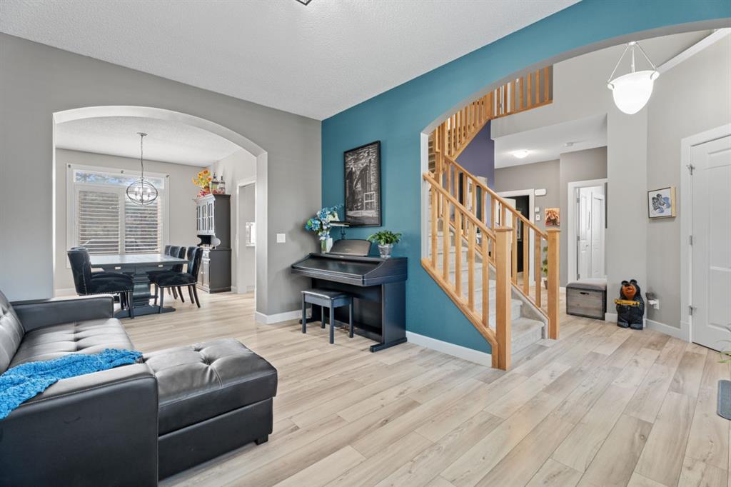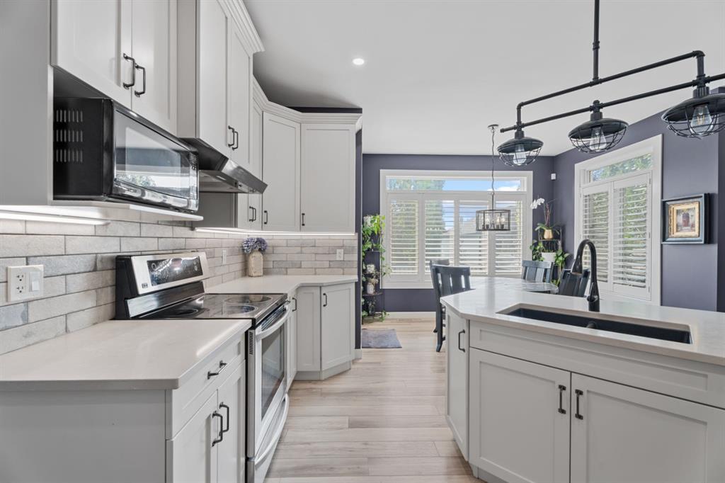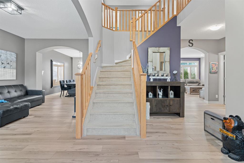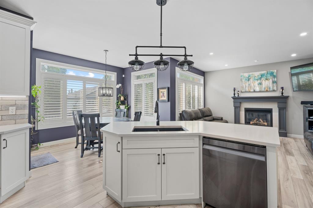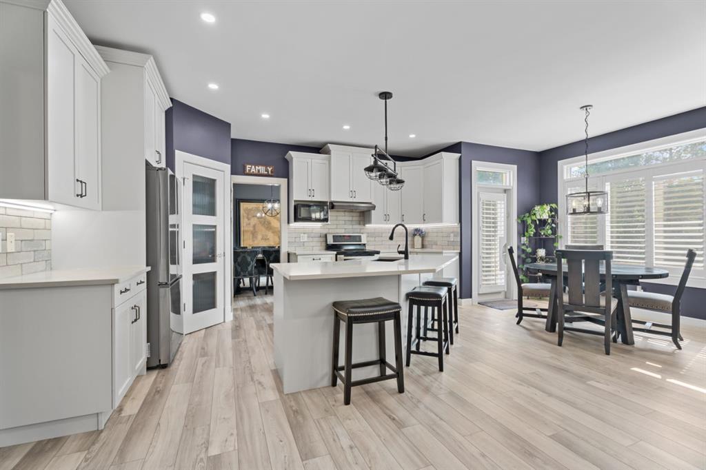 **Open House, Sat/Sun, Jan 17 & 18, 11-1pm** It’s rare to find a home that offers five true bedrooms upstairs, including a tucked away room currently used as a private office that can easily function as a bedroom-a layout that’s perfect for growing families, guests, or multi-generational living. Welcome to this warm and inviting family home in Drake Landing, thoughtfully designed for both everyday living and entertaining. Step into the bright foyer with open to below ceilings that create an airy, welcoming first impression. The renovated kitchen is a true showstopper, featuring white cabinetry, quartz countertops, a stylish tile backsplash, and a corner pantry for added storage. The sunny breakfast nook is ideal for casual meals, while the adjoining living room with a cozy gas fireplace sets the stage for family gatherings. A large formal dining room and a second main floor living space provide flexibility for entertaining, working from home, or relaxing. California shutters throughout the main floor add a touch of elegance, while the mudroom with access to the double attached garage keeps busy family life organized. Upstairs the four bedroom layout truly shines. The spacious primary suite offers a walk in closet and ensuite with soaker tub and shower. Three additional generous bedrooms, plus convenient upper level laundry, make this level as practical as it is comfortable.