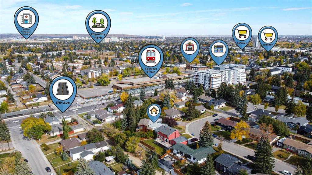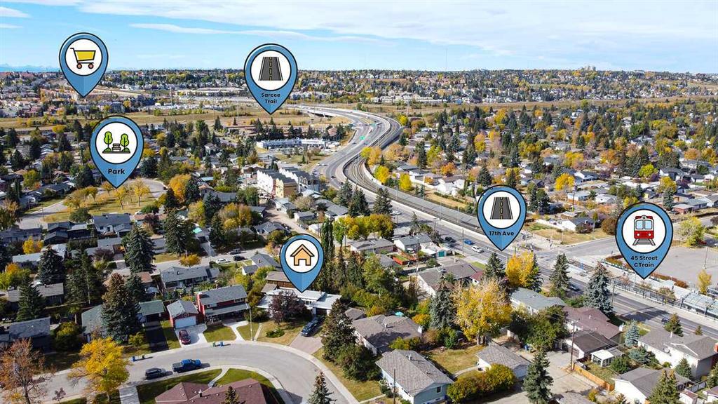Experience the perfect blend of massive redevelopment potential and a unique, spacious family home in the heart of Glendale. Situated on a quiet side street, this sprawling 1/3-acre treed lot features wide frontage, making it a premier candidate for high-density infill under current R-CG zoning. The residence is not your average bungalow. A massive 1980s two-storey addition and a full walkout basement create a sprawling floor plan of approximately 3,800 sq. ft. of developed living space. Sky-High Primary Retreat: The entire second floor is a “cabin in the sky,” featuring vaulted beamed ceilings, wood paneling, a private balcony with stunning views, walk-in closets, attached ensuite and enough space for a King-sized suite plus a sitting area. Architectural Charm: Enjoy open-beam wood ceilings, custom wood paneling, and hardwood floors. Large windows throughout flood the home with natural light. Spacious Living: 6 formal bedrooms plus 2 additional flex rooms (ideal for home offices, gyms, or hobbies). Features a formal dining room, family room, and a cozy living room with a wood-burning fireplace. The Ultimate Walkout Basement: A massive entertainment hub featuring a huge wet bar with floating glass shelves and a separate kitchen/workroom. Modern Comfort: Stay cool with AC and two newer high-efficiency furnaces. Includes a dedicated main-floor laundry room with extensive storage. The location, (Glendale Lifestyle) Live where convenience meets community. Transit & Commute: A 5-minute walk to the C-Train and 17th Ave. Drive downtown in under 15 minutes, reach the Airport in 30, or be in Canmore in just one hour. Walking distance to Spanish Immersion, Public, and Separate schools (Elementary & Junior High). Recreation: Steps from Optimist Athletic Park (Soccer, Lacrosse, Tennis) and Turtle Hill for winter sledding. Minutes from Edworthy Dog Park, the Glencoe Club, and local golf courses. For Developers – Core Development Value: Legal Address: Plan 7689HJ, Block 3, Lot 36 Current Zoning: R-CG Lot Dimensions: Approximately 50’ frontage and 14,495 sq. ft. total area. Orientation Southeast facing front yard with stunning views from the backyard. Topography: built on the edge of a hill provides 180-degree unobstructed views. Transit Proximity: Located within walking distance (approx. 250 m) of 45TH Street LRT station. Facility Proximity: Fire station 350m, Police Station 400m, several schools (both elementary and junior high) are within walking distance (1km or less).