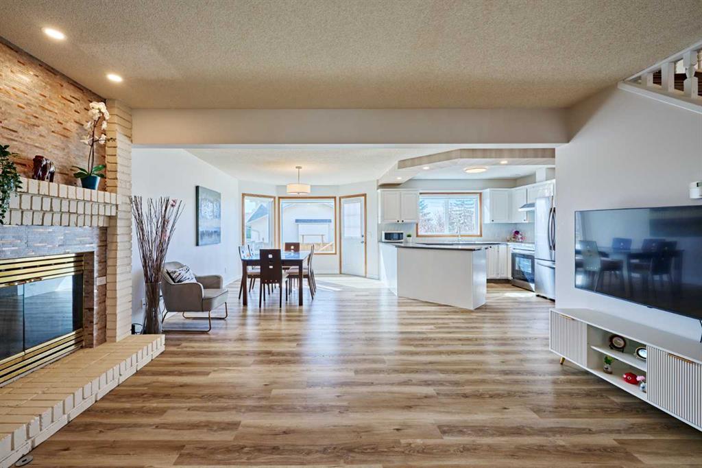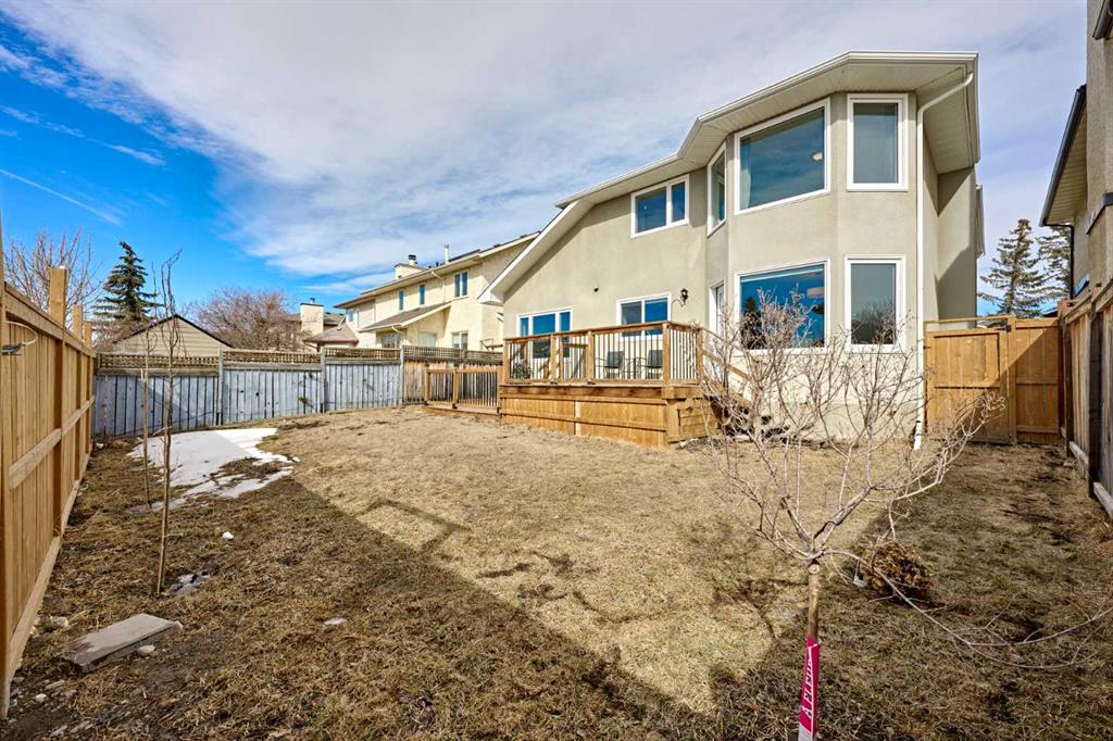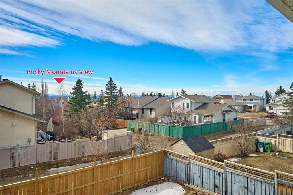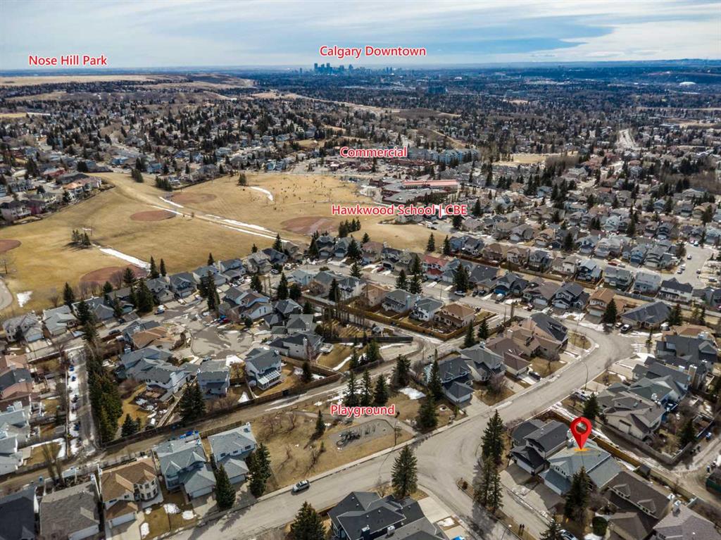 Welcome to this beautiful, bright and spacious 3-bedroom, 2-storey home in the sought-after family community of Hawkwood. Ideally located just steps from a playground and bus stops, and minutes from neighbourhood schools, this home also offers quick access to Stoney Trail, Beacon Hill Costco, Edgemont Superstore, Crowfoot Centre, and the LRT. The home features an extremely open and functional layout with vaulted ceilings, a sunny eat-in kitchen, 2.5 bathrooms, and a fenced southwest-facing backyard with back lane access—perfect for potential RV parking. Recent upgrades include NEW WINDOWS (2024) for the whole house, FRESH PAINT, NEW VINYL FLOORING, NEW FENCE, NEW GARAGE DOOR, NEWER STAINLESS STEEL APPLIANCES, and new lighting fixtures, plus much more. The main floor is ideal for family living and entertaining, offering open-concept living and dining rooms that flow seamlessly into the generous kitchen with ample cabinetry, a dining nook with bay window, and direct access to the backyard deck. The cozy family room features a wet bar, and a wood-burning fireplace. Upstairs, you’ll find three spacious bedrooms, including an oversized primary retreat with mountain views, a large bay window, walk-in closet, and a private ensuite with jetted tub, separate shower, and double vanities.