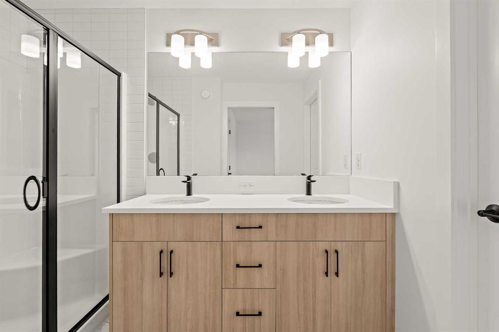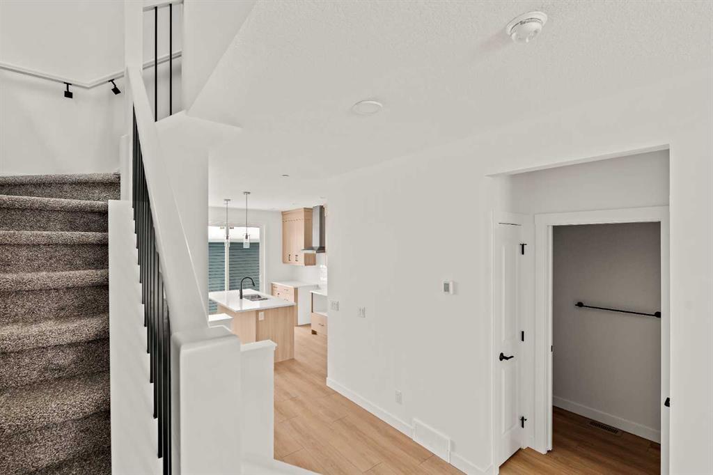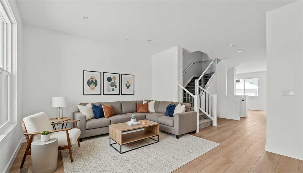 Discover the comfort and ease of modern living in this beautifully crafted Wicklow model by Brookfield Residential, perfectly placed in the vibrant community of Livingston and ready for immediate possession. Thoughtful design and smart use of space define this nearly 1,700 sq. ft. home, offering 3 bedrooms, 2.5 bathrooms, an undeveloped basement with a separate side entrance, and a private single garage with an added parking pad. The main floor welcomes you with 9′ ceilings that create an open, airy feel from room to room. The kitchen is both stylish and functional, featuring a built-in chimney hood fan, built-in microwave, and plenty of counter space for cooking and gathering. It flows effortlessly into the dining area, where patio doors extend your living space to the backyard, ideal for future summer evenings and weekend barbecues. At the front of the home, the bright great room showcases large windows that bathe the space in natural light, offering a warm and inviting setting for everyday relaxation. Upstairs, the layout has been designed with balance in mind. A central bonus room sits between the primary suite and the additional bedrooms, giving everyone a little more breathing room. The primary suite includes a generous walk-in closet and a polished 4-piece ensuite with dual sinks and a walk-in shower. Two additional bedrooms, a full bathroom, and a conveniently located laundry room complete the upper level with ease. The basement has direct access via a side entrance and is undeveloped but includes rough-ins for easy developemnt. Outside, the backyard leads to your single detached garage and extra parking pad, offering practical solutions for storage, vehicles, and guests. Peace of mind comes standard with coverage from both Brookfield’s builder warranty and Alberta New Home Warranty. If you’re looking for a fresh, well-planned home in a growing, amenity-rich neighbourhood, this Wicklow model brings comfort, style, and everyday functionality together in one appealing package.