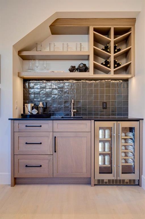 Discover exceptional living in the heart of Calgary’s Inner City with this exquisitely crafted show home in the vibrant and highly sought-after community of Currie. Meticulously built and designed to impress, this true bungalow villa is a statement in refined elegance, boasting premium upgrades, custom millwork, and a layout that seamlessly blends timeless sophistication with everyday functionality. From the moment you step into the spacious foyer, you’re welcomed by soaring ceilings and engineered white oak herringbone hardwood flooring, setting the tone for the superior level of finish throughout. A private front den with views of the charming front porch serves as the perfect home office or library, offering separation from the main living space. The heart of the home is an expansive open concept living area that pairs a classic design aesthetic with modern luxuries. The formal dining area is ideal for entertaining, while the masterfully curated kitchen is the “chef’s kiss” featuring custom cabinetry, quartz countertops, and an elite panelled Sub-Zero refrigerator, Wolf appliance package, including a 6-burner gas range with griddle, built-in wall oven and microwave, and Asko dishwasher. An oversized island invites gatherings, and the adjacent open pantry keeps essentials close at hand yet neatly tucked away. The living room is adorned in natural light and anchored by a striking matte black feature fireplace wall, creating a dramatic focal point. Large sliding glass doors extend the living area outdoors to a pergola covered deck, offering a seamless indoor/outdoor lifestyle experience. Retreat to the luxurious primary suite with vaulted ceilings, expansive window, and a custom designed dressing room leading to a lavish 6pc ensuite. Indulge in the deep soaker tub, his/her sinks, and a show stopping walk-in shower with dual rainfall heads and a built-in bench, all appointed with exquisite tile and designer fixtures. Thoughtfully designed for convenience, the main floor also features a spacious laundry/mudroom with access to the heated double garage with aggregate flooring. Downstairs, you’ll find in-floor boiler heating, high ceilings, and an entertainer’s dream layout. A generous games room with a full wet bar flows into a cozy media room, perfect for movie nights or game days. Two large bedrooms, one with its own ensuite, are separated by a dedicated home gym space and guest bathroom. Homeowners will love the large pergola deck that steps down to their own backyard where gardening enthusiasts can create an outdoor colourful oasis or a relaxation retreat. Located in Currie, a master-planned community rich in history and brimming with modern lifestyle amenities, from scenic parks and pathways to dog parks, cafés, restaurants, and top- tier schools. Just minutes from Marda Loop and downtown Calgary. Personalize your dream villa today by meeting with our design experts and customizing the finishing touches to match your unique style and vision