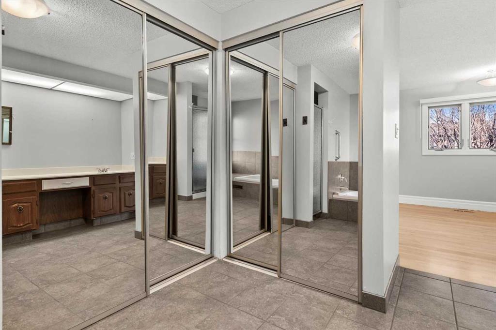 Updates include – Kitchen renovation ($100,000) cabinetry/island, quartz counters, soft-close drawers & pullouts, stainless appliances (2015), 2 sink areas, Upper level 4 pce bath renovated (2015), hardwood flooring throughout main (excluding back entrance & 2 pce. bath), hardwood up stairs continuing down the hall, primary bedroom and sitting area (2015) most windows replaced (2015–present), front door (2015), two upper level solar skylights (2015), primary balcony reconstructed (2020), cedar shake roof inspected (2024), furnace (2023), Furnace serviced (2025), Hot water tank replaced (Jan 2026), fence replaced. A wonderful family home with access to Stoney Trail SW and allows easy access to travel in all directions beyond the city limits.