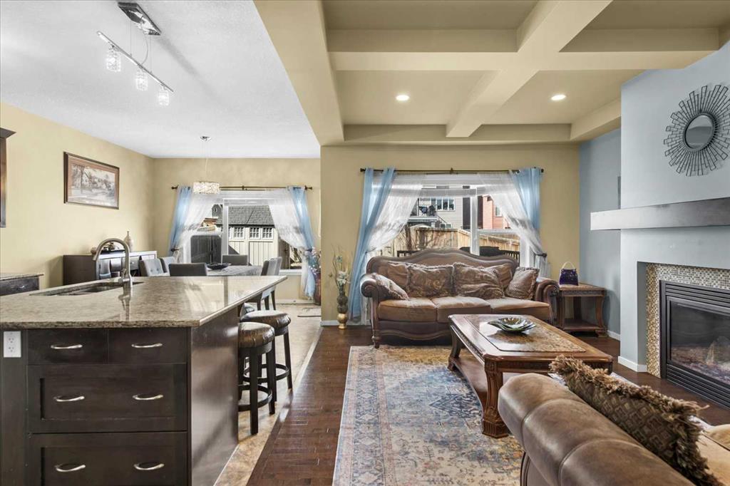 Welcome to this beautiful home in a prime location, within walking distance to Shaganappi Trail NW and Sage Valley Shopping Centre. Featuring FRESHLY PAINTED and an open-concept layout, the main floor offers elegant hardwood flooring and a versatile corner flex room, perfect for a home office. The bright and spacious living room is filled with natural light and complemented by a cozy corner fireplace. The stylish kitchen includes a corner pantry, high-quality granite countertops, and a large centre island with an eating bar—ideal for everyday living and entertaining. The adjacent dining area overlooks a fully fenced and landscaped backyard with a beautiful deck, perfect for summer BBQs.