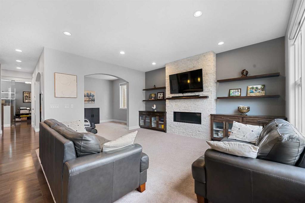 With over 3,500 sqft. of developed living space, this home offers the perfect blend of functionality and style. The main floor features 9’ ceilings, hardwood flooring, versatile office space & spacious living room with gas fireplace. Gorgeous chef’s kitchen comes complete with quartz countertops, stainless steel appliances, gas stove, large island & a spacious pantry. The dining area opens to a fully fenced backyard with low maintenance landscaping (turf!) and large composite deck—ideal for entertaining. Your very own backyard oasis!