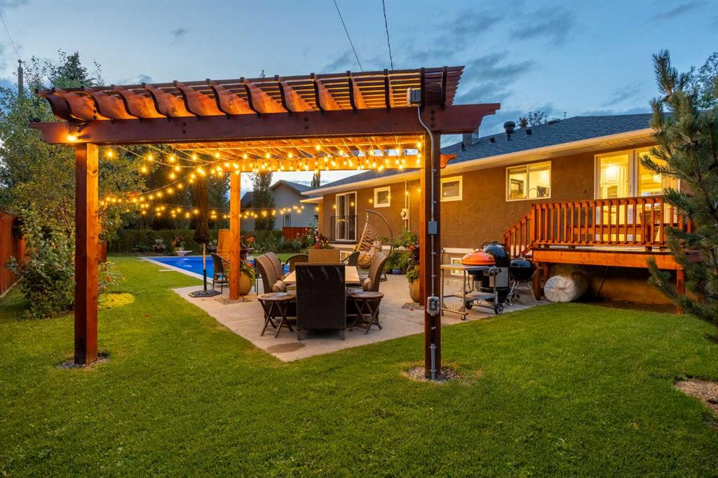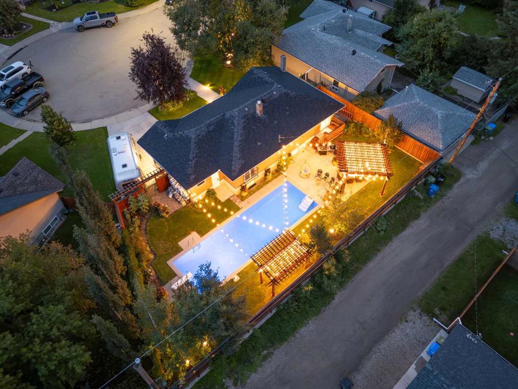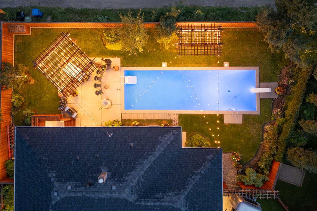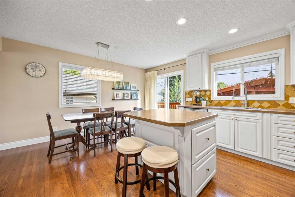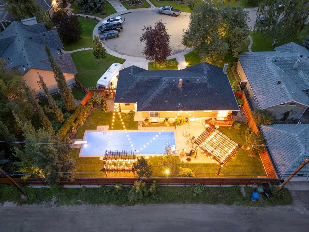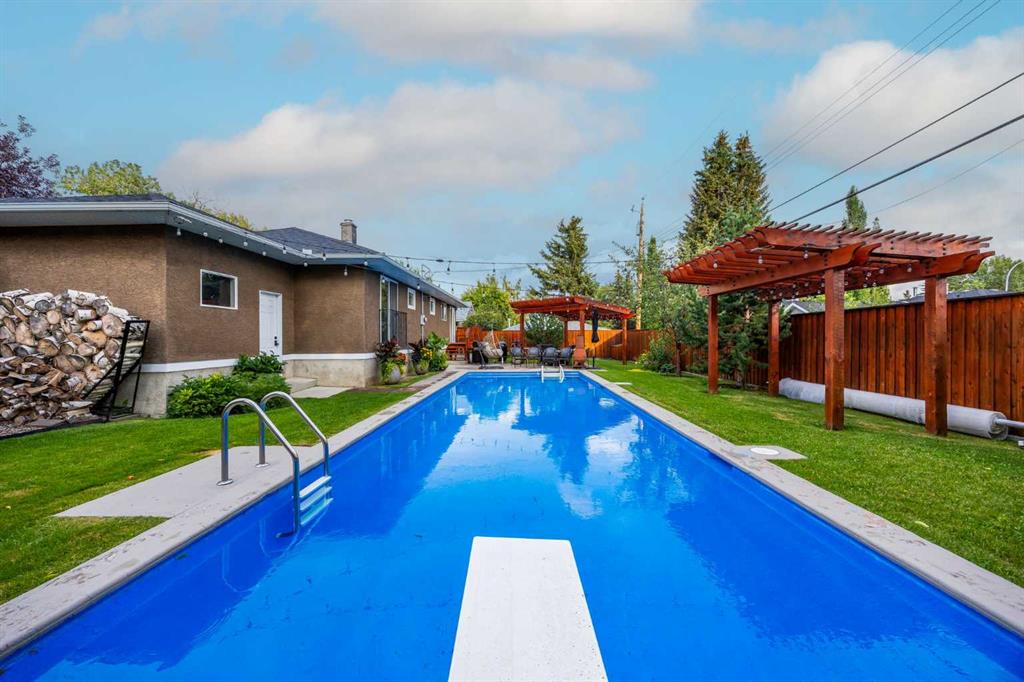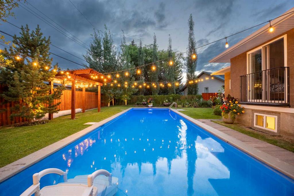 Tucked away on a quiet cul-de-sac in the highly sought-after community of Wildwood, this beautifully updated 1,258 sq ft bungalow offers a perfect blend of style, comfort, and outdoor living. Large windows throughout fill the home with natural light, with the spacious living room showcasing huge windows that frame the view of the front yard. Hardwood floors run through the main level, complemented by a front den that’s ideal for a home office or music room. The kitchen impresses with a centre island, loads of cabinetry, a glass tile backsplash, and crisp white cupboards, opening to the dining room with direct access to your private backyard oasis. Here, you’ll find a sparkling pool, two pergolas with ambient lighting, a spacious deck, lush perennial gardens, and green space designed for both entertaining and relaxation. The main floor hosts 2 generous bedrooms and 2 full baths, while the fully developed basement offers 2 additional bedrooms, a full bath, and a large rec room with a cozy fireplace and dedicated gym area. Combining a prime location with a functional layout and resort-style yard, this property is truly a rare find in one of Calgary’s most desirable neighbourhoods.