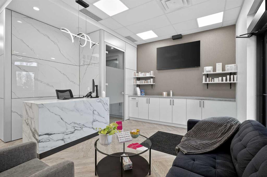 Elevate your business in this beautifully developed 1035 sq ft retail space. This turnkey unit is perfectly configured for professional practices, ideal for a Chiropractic office, massage therapy clinic, or esthetician’s office.
