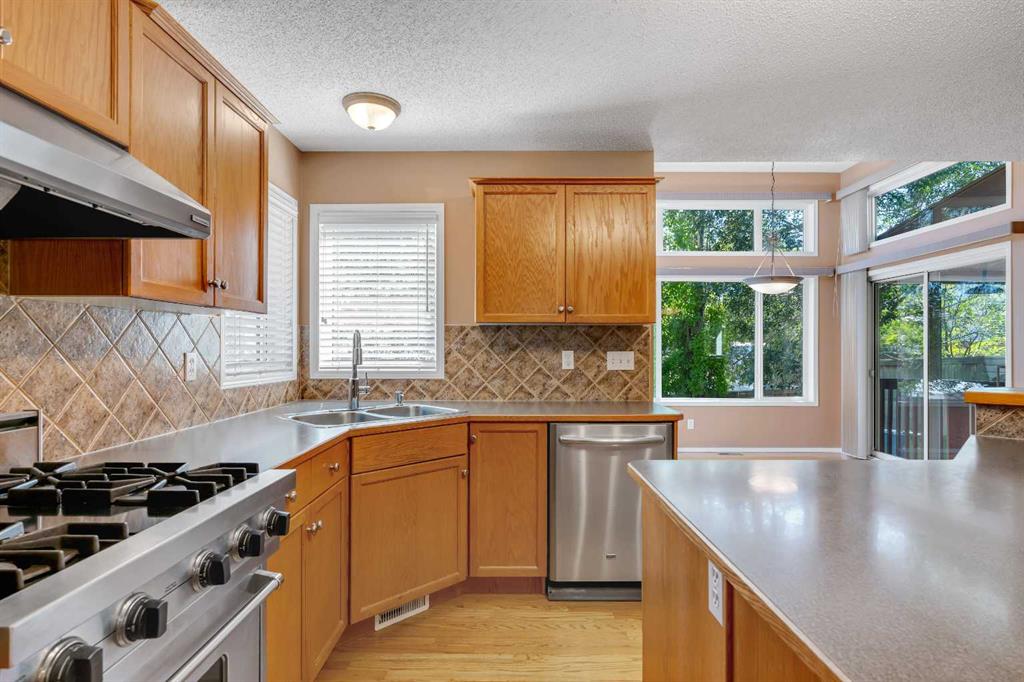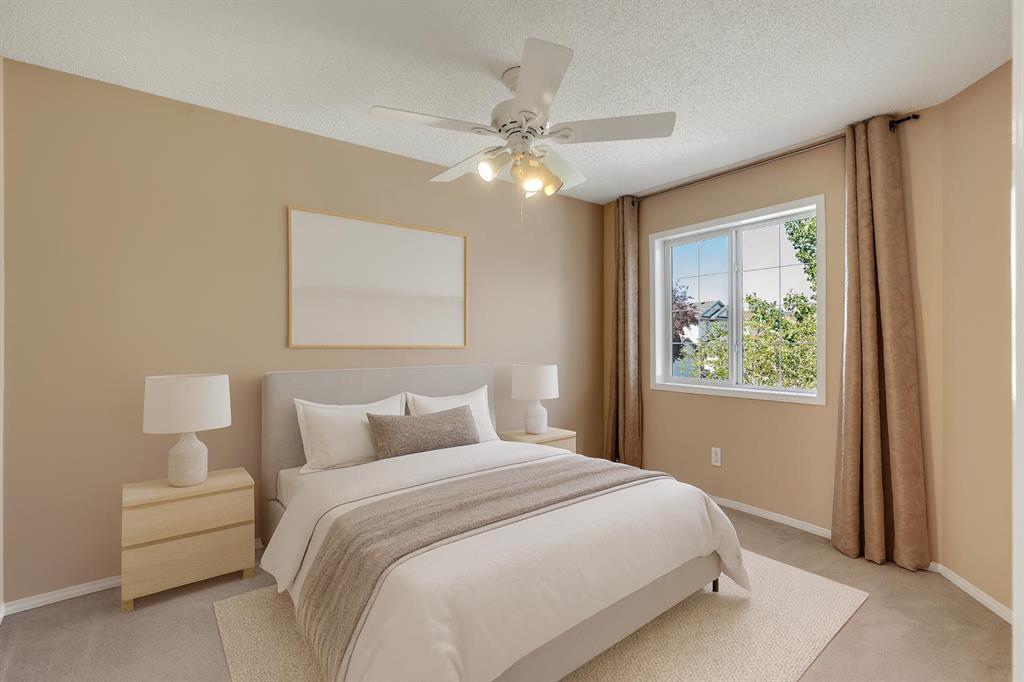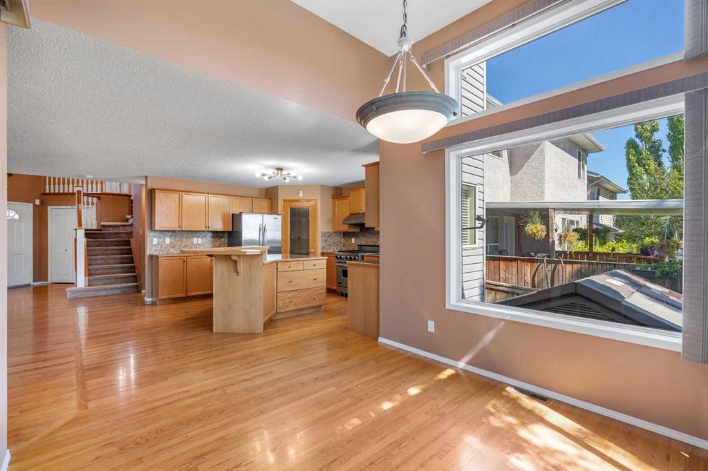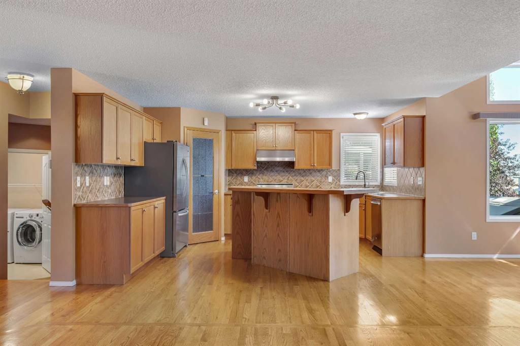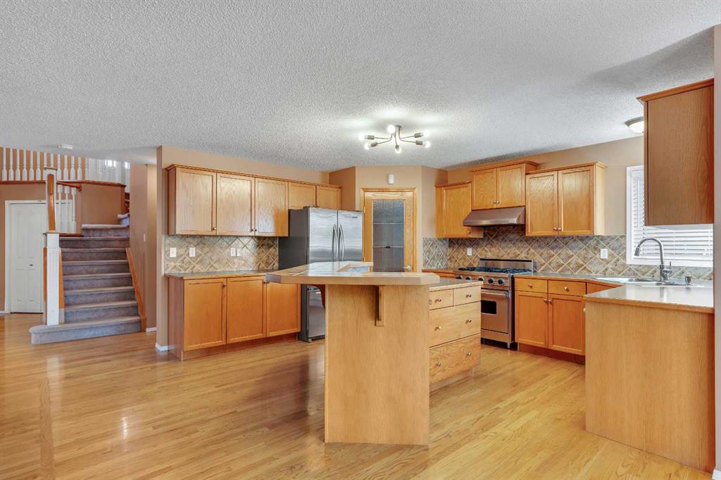 This is it! Welcome to this beautifully maintained two-storey home in family-friendly Harvest Hills, offering over 2,000 sq. ft. of living space plus an attached double garage. Situated on a landscaped lot with a fully fenced backyard and a covered deck, this property checks all the boxes. Step inside a bright, open layout designed for both everyday living and entertaining. The spacious kitchen features a large island, corner pantry, and plenty of cabinetry, flowing seamlessly into a dining room full of natural light that provides access to the covered deck. The inviting family room offers a stone fireplace with custom built-in shelving. Additional main-floor highlights include a flexible front living room, the laundry room, and a 2-piece bathroom. Upstairs, discover four well-sized bedrooms, each with great layouts and storage. The primary retreat boasts soaring ceilings, a walk-in closet, and a 4-piece ensuite with separate shower and soaking tub. Two additional bedrooms also feature their own walk-in closets, ideal for growing families. A second full bathroom completes this level. Nestled on a quiet street just steps from schools, parks, and pathways, this home offers a true sense of community. Easy access to major routes, shopping, and recreation makes daily living effortless, while the backyard and covered deck invite year-round enjoyment with family and friends. This Harvest Hills gem combines functional design and includes a brand new roof, gutters, and downspouts. Don’t miss out, call your REALTOR® and book a showing today!