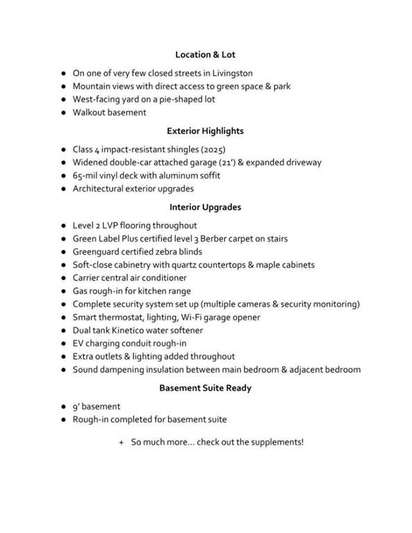 Rare opportunity to own a like-new walkout home on a massive west-facing pie lot backing onto green space, with mountain views on clear days! Built just over 2 years ago and located on one of Livingston’s few quiet closed streets with no through traffic, this property offers privacy, views, and a lot size that is nearly impossible to replicate in newer developments.