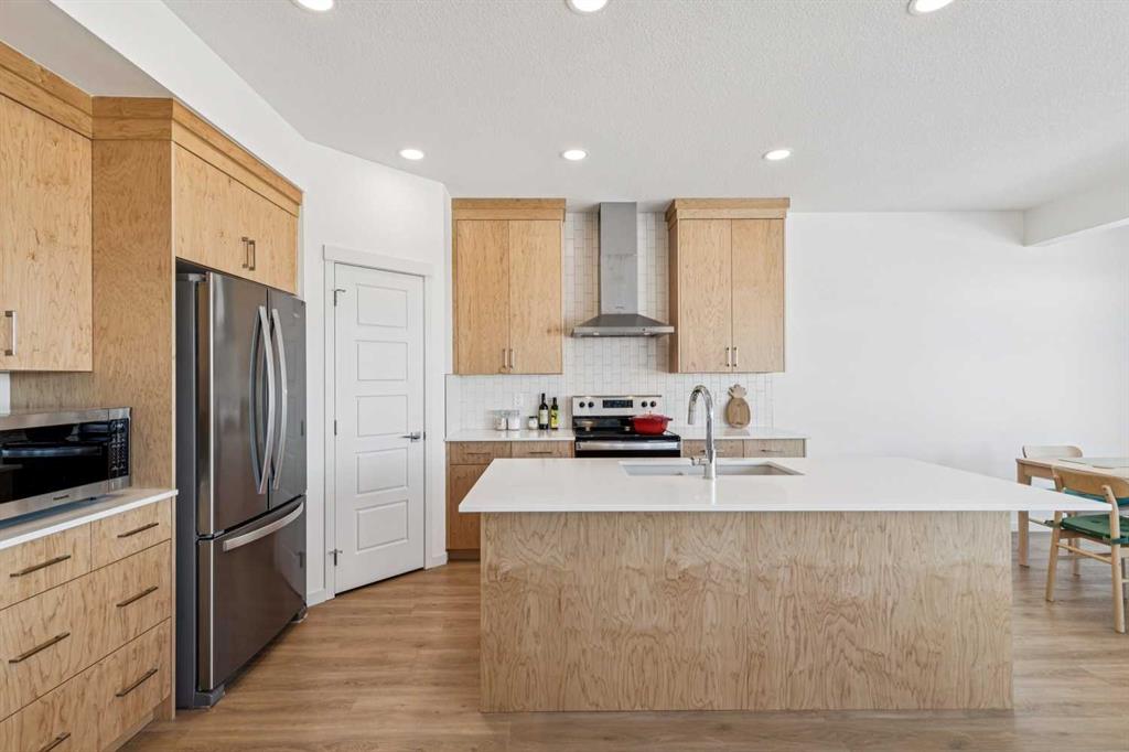 Welcome to 150 Lucas Close NW, offering nearly 1,800 sq ft above grade, a double attached garage, and a thoughtfully designed layout built for modern living. The bright main floor features an open concept design with a stylish kitchen complete with quartz countertops, soft-close maple cabinetry, Whirlpool appliances, and gas range rough-in, flowing into the dining area and living room with large windows and access to the rear deck overlooking the expansive backyard.