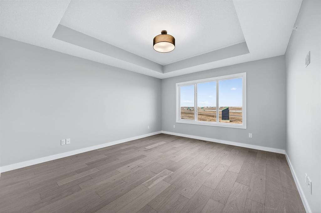 Upstairs, the luxurious primary suite includes a tray ceiling, spa-inspired 5-piece ensuite, and a generous walk-in closet, complemented by two additional bedrooms, a 4-piece bath, and convenient upper-level laundry. The lower level, with a separate side entrance, is ready for future development.