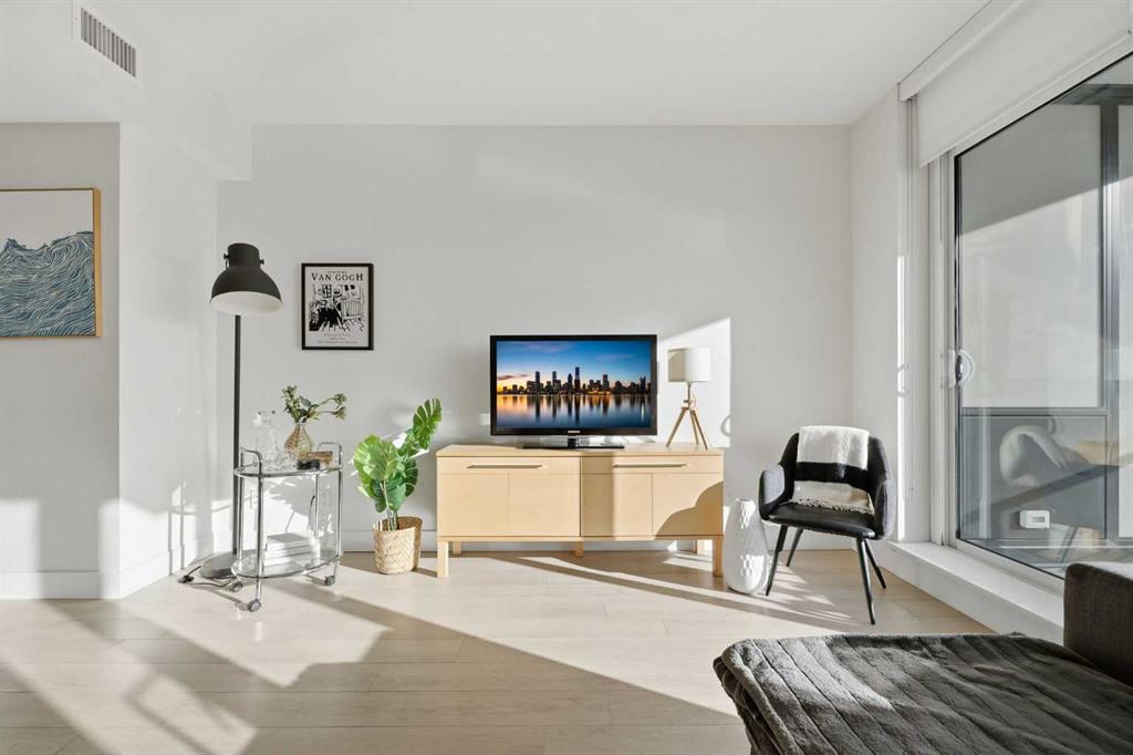 Welcome to Unit 1501 at The Guardian — a bright and modern 1-bedroom, 1 bathroom condo offering elevated city living just outside of Calgary’s downtown core. This south-facing home is filled with natural light and offers expansive views of the ever-growing Stampede Park, creating an open, airy feel throughout. The thoughtfully designed floor plan is both functional and inviting, ideal for first-time buyers, professionals, or investors. The unit includes a titled, heated underground parking stall, adding everyday convenience and year-round comfort. The Guardian is known for its exceptional amenities, including a fully equipped fitness centre, recreation and social rooms, and a common area patio complete with community BBQs and fire tables, perfect for entertaining or unwinding after a long day. Residents also enjoy access to a hobby room, offering flexible space for creative projects and personal use. Located just one block from the future Calgary Flames Event Centre and steps from Stampede Park, transit, dining, and entertainment, this is an unbeatable location for those seeking an urban lifestyle with long-term growth potential. Whether you’re looking to live or invest, Unit 1501 offers comfort, convenience, and connection in one of Calgary’s most dynamic communities.