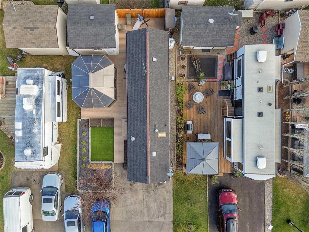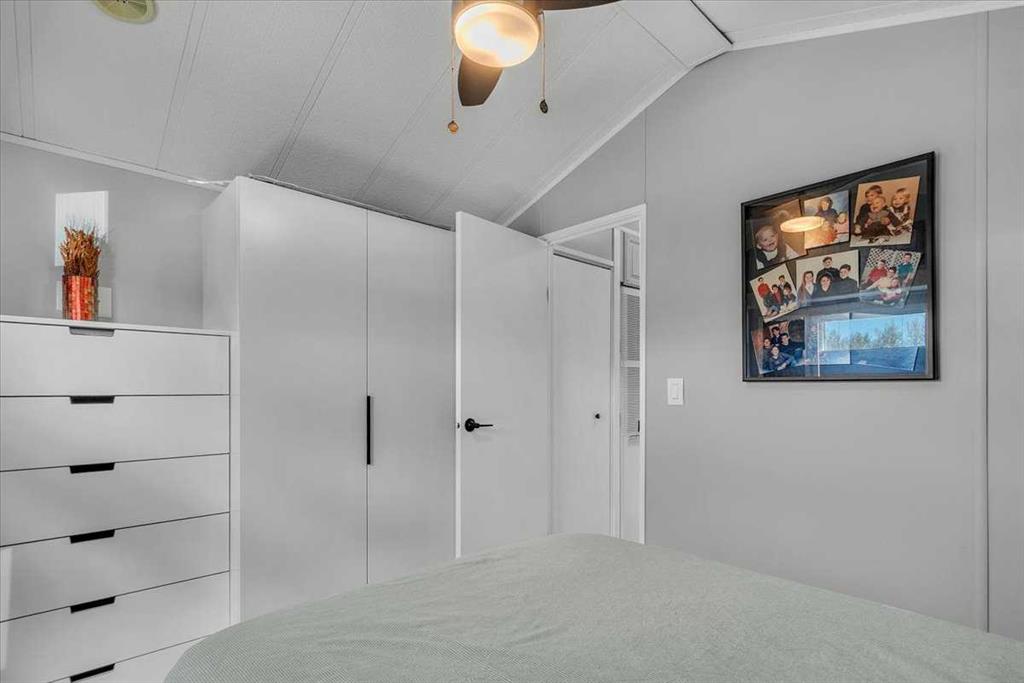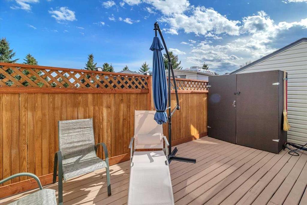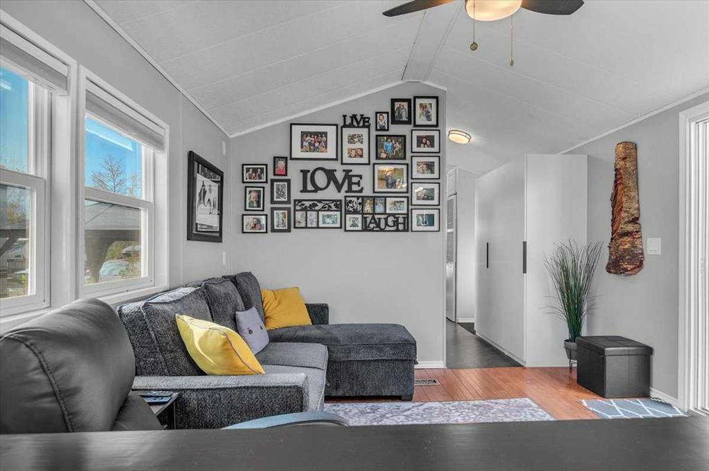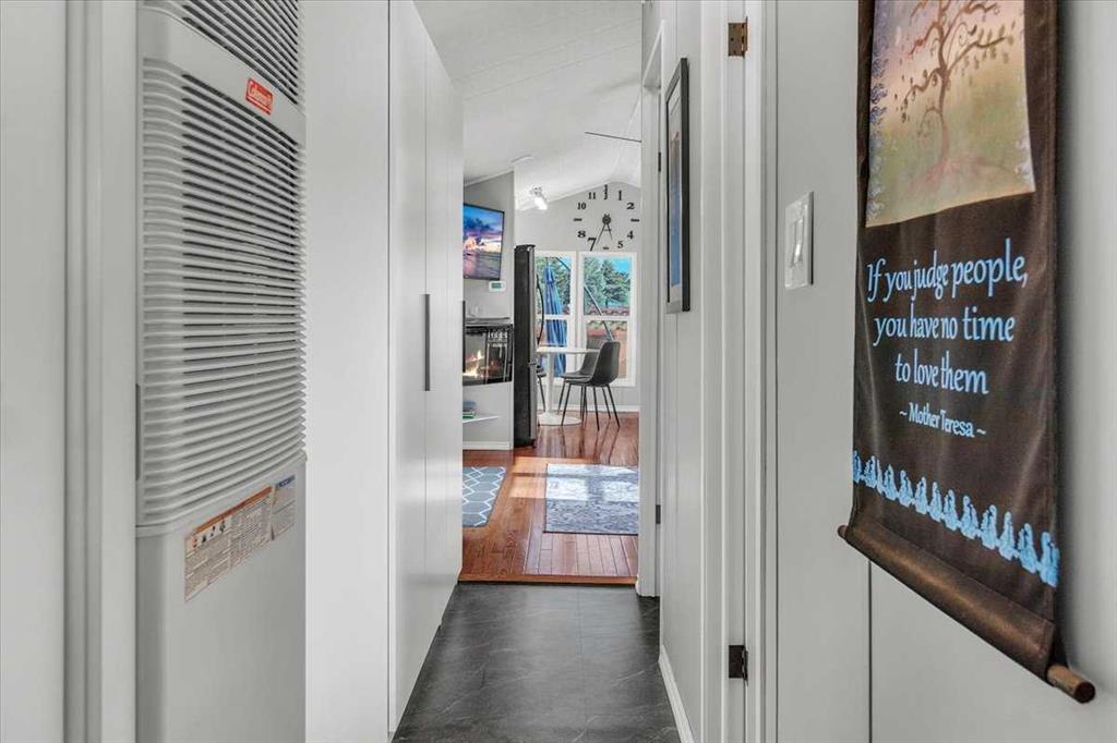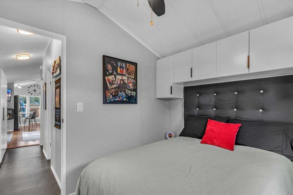 Welcome to Country Lane Estates, a neat RV community alongside the Sheep River and just outside of Okotoks, with close proximity to Calgary! This park has a sense of pride of ownership throughout the community and is seasonal-open from April 1st to October 31st. You will absolutely ENJOY this renovated park model which comes fully furnished with all the furniture inside and out except for the master bed, mattress, office chair and barbeque! You will love the bright, new kitchen, including newer appliances and a pantry in the hallway cabinets (which double up as an entry closet with extra storage), plus the bright cozy dining area with table and chairs. The living room features a newer sofa which doubles up as a hide-a-bed, the 40″ smart TV and a new electric fireplace for those chilly evenings in Alberta. The 4 pc bath comes with a large shower, new vanity and toilet. The laundry area has enough space for the desk which is included and the primary bedroom features a new wall unit as well as extra storage above the bed. This whole unit has been freshly painted and comes with hardwood in the main living area, newer carpet in the bedroom and new flooring in the rest of the home. You have the advantage of a maintenance free yard which is freshly manicured with some green turf, perennials, a large 3 season solarium which includes the furniture and lots of deck area. You will love the 12×12 storage shed which has recently been converted into a bedroom and comes with all the furniture-so convenient for family or guests that come. The Clubhouse at the entrance to the park boasts a fitness gym, an outdoor pool, hot tub, laundry facility, BBQs, meeting spaces and a lounge with pool table, games, books and an auditorium with a stocked kitchenette for larger events that you may want to host. Being that it’s right alongside the river you can enjoy fishing, walks along the river or the walking path in the park so you can stop to chat with neighbors AND your kids will enjoy the playground and the dog park. This is a very friendly RV park that definitely has a great sense of community. This is a bare land condo and the power meters will be installed on each individual lot this June bringing the condo fees down to $188. per month.