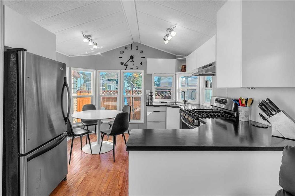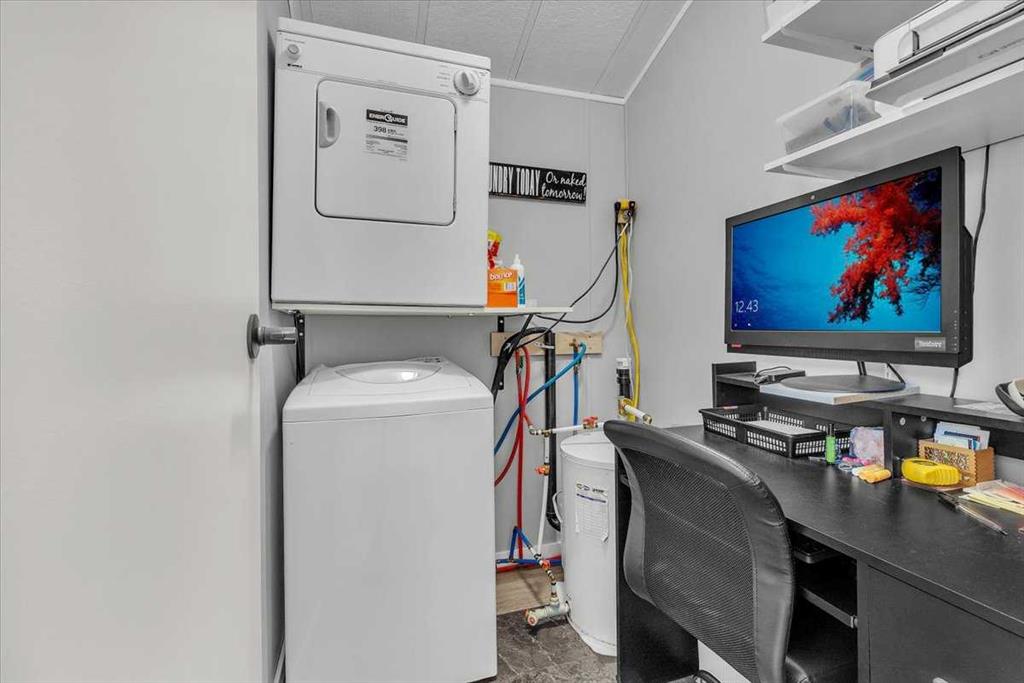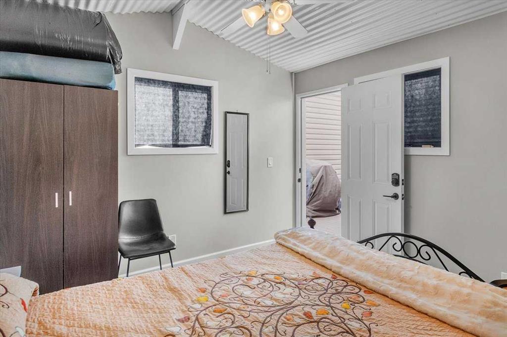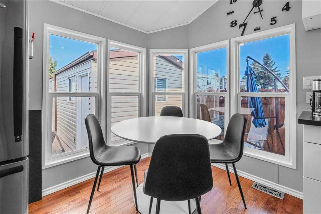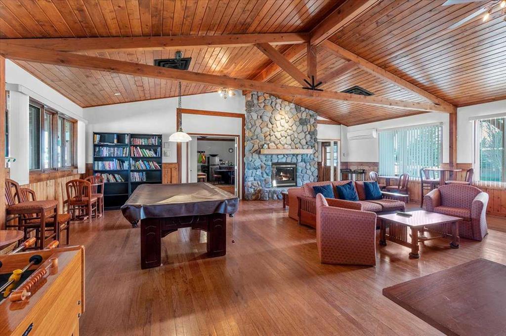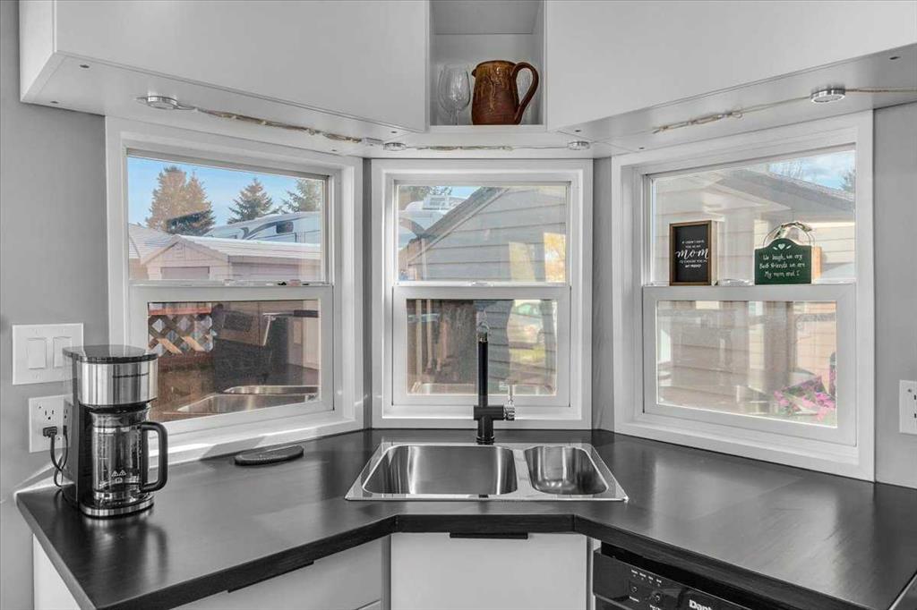 Welcome to Country Lane Estates, a neat RV community alongside the Sheep River and just outside of Okotoks, with close proximity to Calgary! This park has a sense of pride of ownership throughout the community and is seasonal-open from April 1st to October 31st. You will absolutely ENJOY this renovated park model which comes fully furnished with all the furniture inside and out except for the master bed, mattress, office chair and barbeque! You will love the bright, new kitchen, including newer appliances and a pantry in the hallway cabinets (which double up as an entry closet with extra storage), plus the bright cozy dining area with table and chairs. The living room features a newer sofa which doubles up as a hide-a-bed, the 40″ smart TV and a new electric fireplace for those chilly evenings in Alberta. The 4 pc bath comes with a large shower, new vanity and toilet. The laundry area has enough space for the desk which is included and the primary bedroom features a new wall unit as well as extra storage above the bed. This whole unit has been freshly painted and comes with hardwood in the main living area, newer carpet in the bedroom and new flooring in the rest of the home. You have the advantage of a maintenance free yard which is freshly manicured with some green turf, perennials, a large 3 season solarium which includes the furniture and lots of deck area. You will love the 12×12 storage shed which has recently been converted into a bedroom and comes with all the furniture-so convenient for family or guests that come. The Clubhouse at the entrance to the park boasts a fitness gym, an outdoor pool, hot tub, laundry facility, BBQs, meeting spaces and a lounge with pool table, games, books and an auditorium with a stocked kitchenette for larger events that you may want to host. Being that it’s right alongside the river you can enjoy fishing, walks along the river or the walking path in the park so you can stop to chat with neighbors AND your kids will enjoy the playground and the dog park. This is a very friendly RV park that definitely has a great sense of community. This is a bare land condo and the power meters will be installed on each individual lot this June bringing the condo fees down to $188. per month.