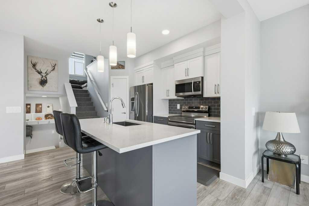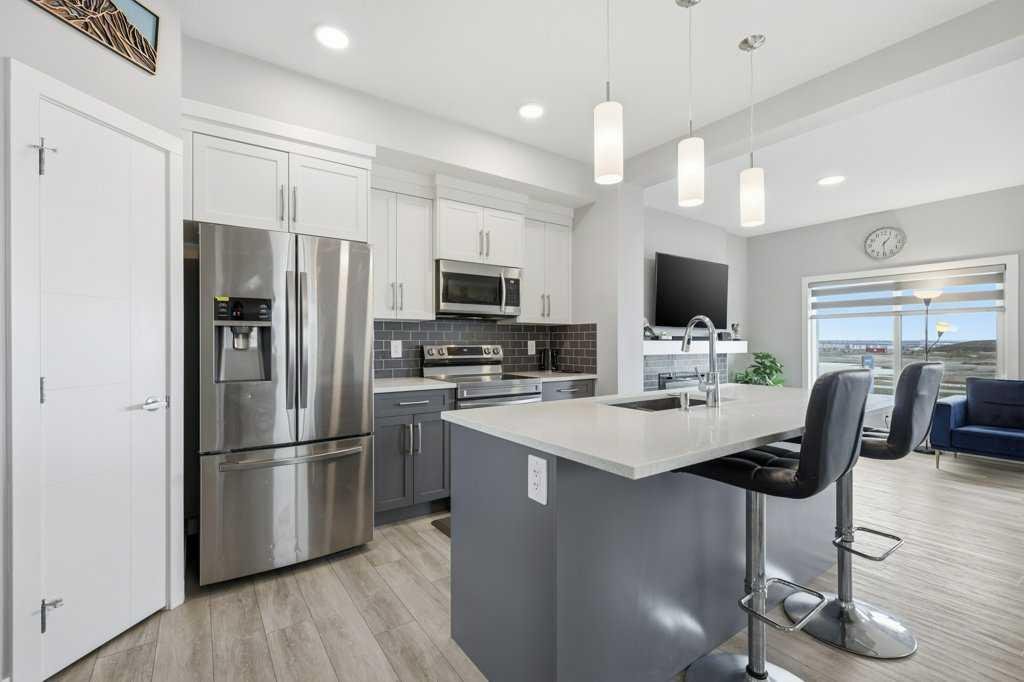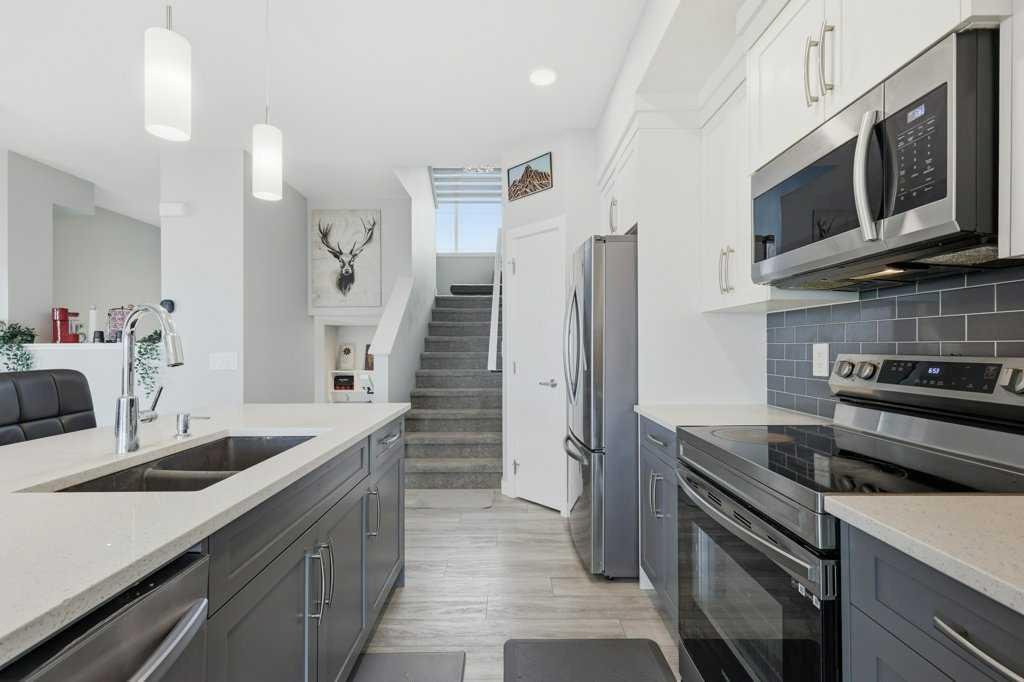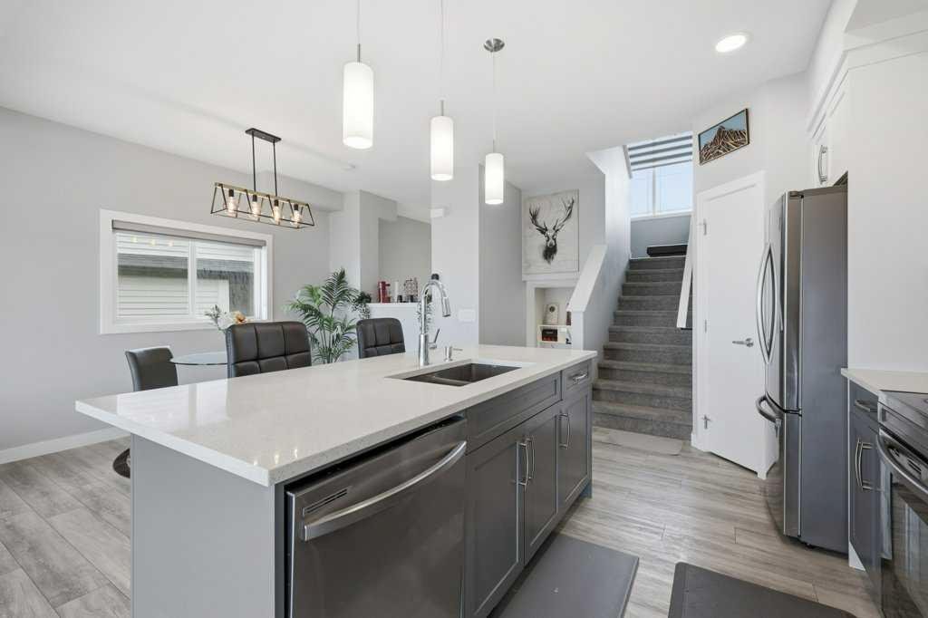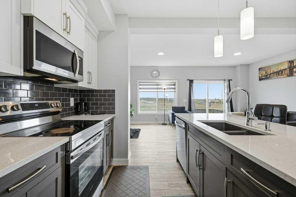 The main floor opens up around a kitchen built for actual cooking. Quartz counters, walk-in pantry, stainless appliances. White shaker uppers, grey lowers, dark subway tile backsplash. The island fits a family. Living room sits right off the kitchen with a tiled fireplace and big windows facing the back. Side entry has a built-in mudroom with bench, hooks, and cubbies, which you’ll appreciate the first time someone walks in with wet boots. Upstairs is where it gets interesting. The bonus room has vaulted ceilings and its own fireplace, basically a second living room. Three bedrooms up here, including a primary with a walk-in closet and an ensuite with a glass shower. Laundry on the bedroom level where it should be. Two and a half baths total. Attached garage out front. Fenced yard with a patio and a back deck for summer dinners. The basement is unfinished and ready for whatever you have in mind, whether that’s a fourth bedroom, a rec room, or both. Pine Creek itself has grown into one of Calgary’s better newer SW communities. Playgrounds and soccer fields within a 20-minute walk. Pathways winding past ponds, wetlands, and into the foothills. Township Centre and Silverado Shopping are minutes away for groceries, coffee, and errands. Stoney Trail puts the mountains within easy reach on weekends. Macleod Trail takes you downtown when you need it. Spruce Meadows is up the road. Fish Creek Park and the South Health Campus are close. Wake up to foothills views and you’ll get why people are moving out here.