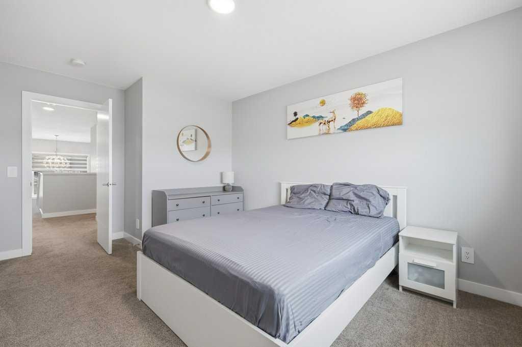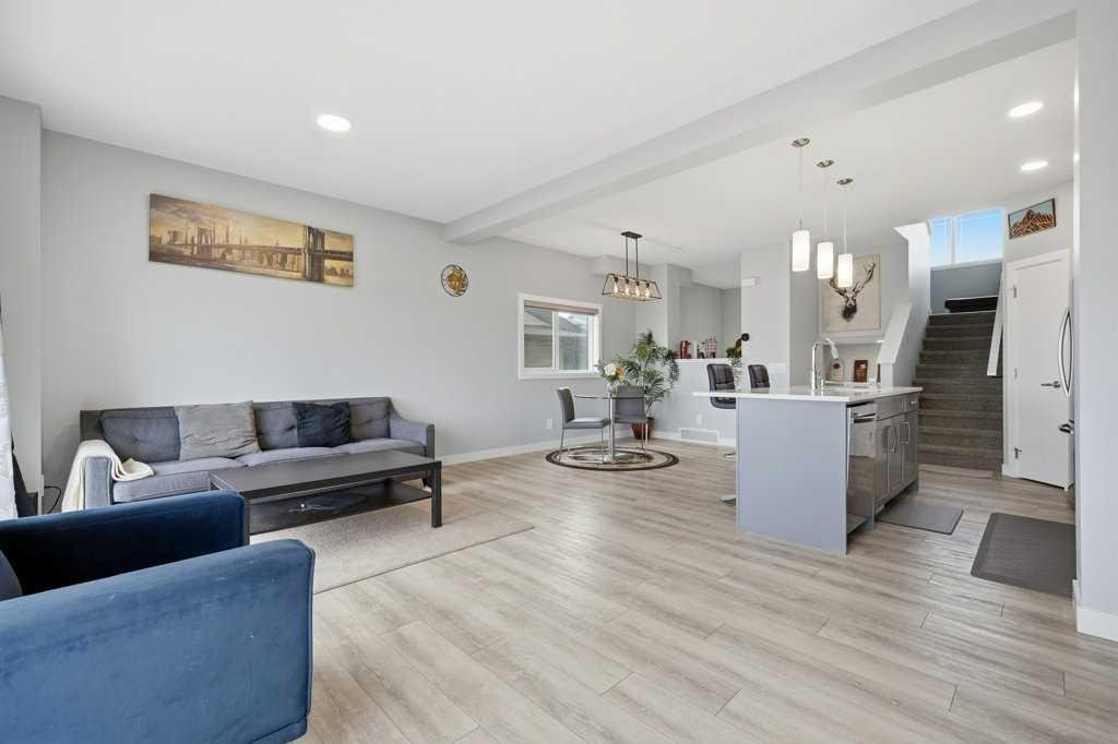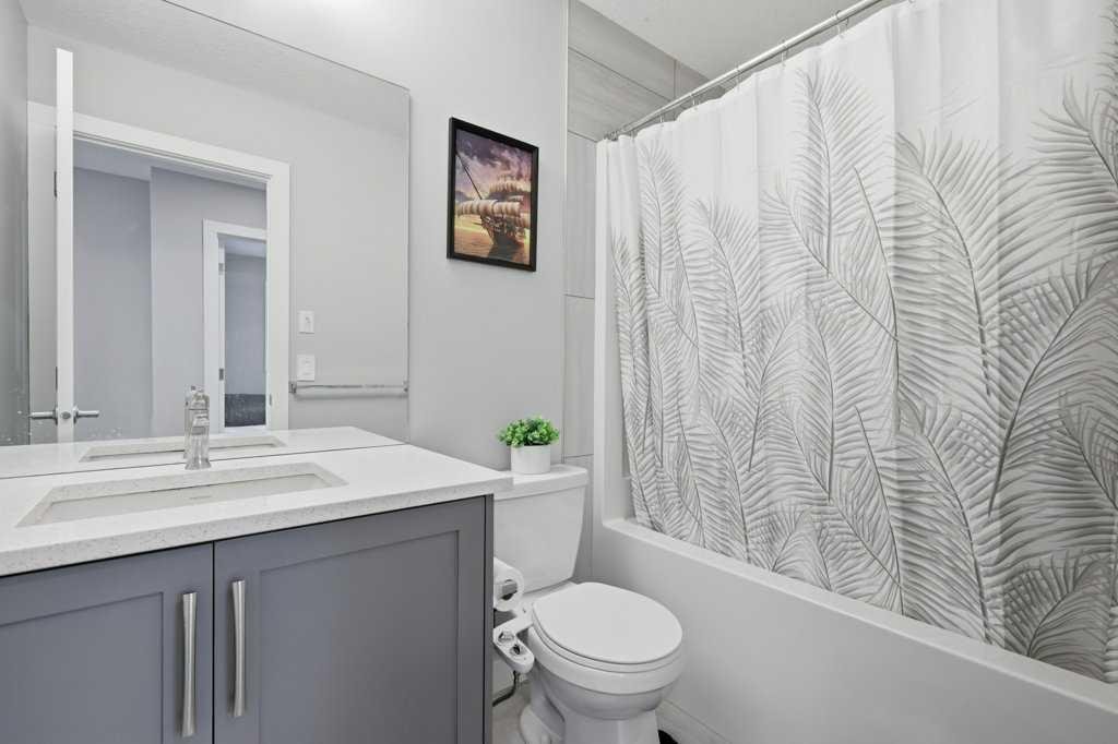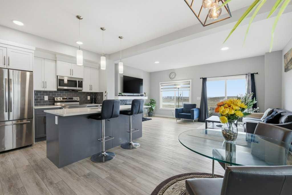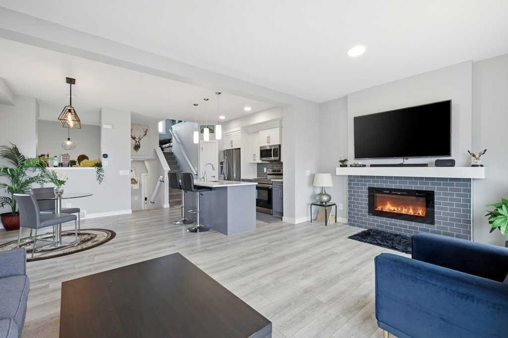 The main floor opens up around a kitchen built for actual cooking. Quartz counters, walk-in pantry, stainless appliances. White shaker uppers, grey lowers, dark subway tile backsplash. The island fits a family. Living room sits right off the kitchen with a tiled fireplace and big windows facing the back. Side entry has a built-in mudroom with bench, hooks, and cubbies, which you’ll appreciate the first time someone walks in with wet boots. Upstairs is where it gets interesting. The bonus room has vaulted ceilings and its own fireplace, basically a second living room. Three bedrooms up here, including a primary with a walk-in closet and an ensuite with a glass shower. Laundry on the bedroom level where it should be. Two and a half baths total. Attached garage out front. Fenced yard with a patio and a back deck for summer dinners. The basement is unfinished and ready for whatever you have in mind, whether that’s a fourth bedroom, a rec room, or both. Pine Creek itself has grown into one of Calgary’s better newer SW communities. Playgrounds and soccer fields within a 20-minute walk. Pathways winding past ponds, wetlands, and into the foothills. Township Centre and Silverado Shopping are minutes away for groceries, coffee, and errands. Stoney Trail puts the mountains within easy reach on weekends. Macleod Trail takes you downtown when you need it. Spruce Meadows is up the road. Fish Creek Park and the South Health Campus are close. Wake up to foothills views and you’ll get why people are moving out here.