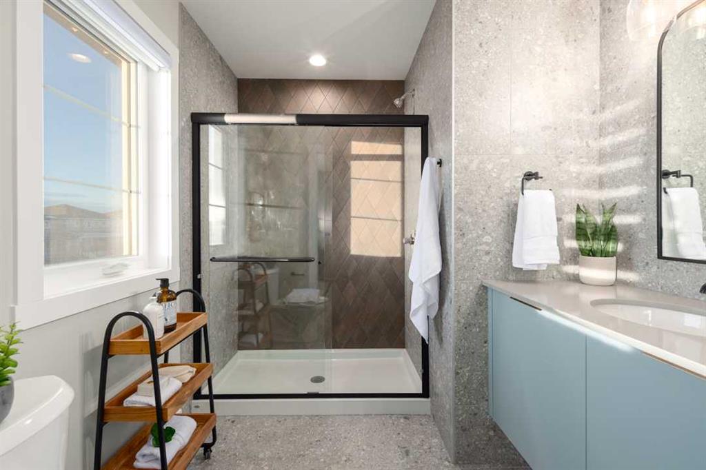New build by Shane Homes in Bridgeport. The Cascade model offers thoughtful design and quality construction, located on a desirable corner lot. This duplex features three bedrooms upstairs, including a spacious primary bedroom with a walk-in closet and private ensuite. A dedicated upper-level flex room provides valuable additional living space, perfect for a home office, media area, or playroom. Upstairs laundry with washer and dryer included adds everyday convenience. The main floor showcases a bright, open-concept kitchen, dining, and living area ideal for modern living and entertaining, along with a walk-in pantry and a convenient half bathroom. A side entry door offers potential future flexibility, and the unfinished basement is ready for your personal vision. Photos are representative of a similar finished build and are for illustrative purposes only.