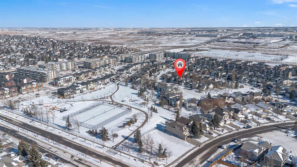 Welcome to this beautifully maintained, fully developed two-storey home nestled on a quiet street in sought-after Harvest Hills. Perfectly located within walking distance to scenic pathways, the pond, playground, and pickleball/tennis courts, this home offers the ideal balance of comfort, convenience, and community living. Step inside to discover stunning caramel Acadia walnut hand-scraped solid hardwood floors (installed June 2019) flowing throughout the main level. At the front of the home, you’ll find a versatile dining room that would also make an excellent home office or children’s playroom. The thoughtfully designed kitchen features ample counter space, plenty of cabinetry, a corner pantry, and stainless steel appliances — perfect for both everyday living and entertaining. The cozy living room is highlighted by a gas fireplace, creating a warm and inviting space for those cold winter nights. Upstairs offers three generously sized bedrooms, including a spacious primary retreat complete with a walk-in closet and full ensuite. A bright bonus room and a full main bathroom complete the upper level, providing plenty of space for a growing family. The fully finished basement is an entertainer’s dream, boasting a massive recreation room and an impressive dry bar with granite countertops, abundant cabinetry and drawers, plus a brand-new bar fridge (included). The spa-inspired 4-piece bathroom features granite countertops, a beautifully tiled shower with dual shower heads, and heated tile flooring with a brand-new thermostat. Additional upgrades and features include: Central air conditioning, New 50-gallon hot water tank (2019), Furnace cleaned and serviced February 25, 2026, Fireplace to be serviced prior to closing, New fridge (June 2023), New Kohler kitchen faucet (2025) with lifetime warranty, all toilets have been replaced. Brand new washer & dryer 02/2026. This move-in-ready home truly shows pride of ownership throughout and offers exceptional value in a fantastic family-friendly location. Don’t miss your opportunity to call this Harvest Hills gem your own!