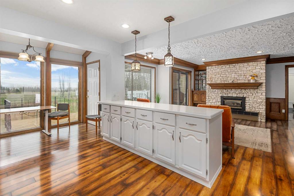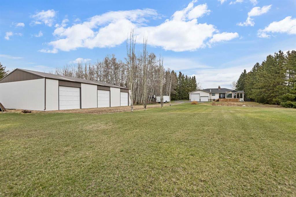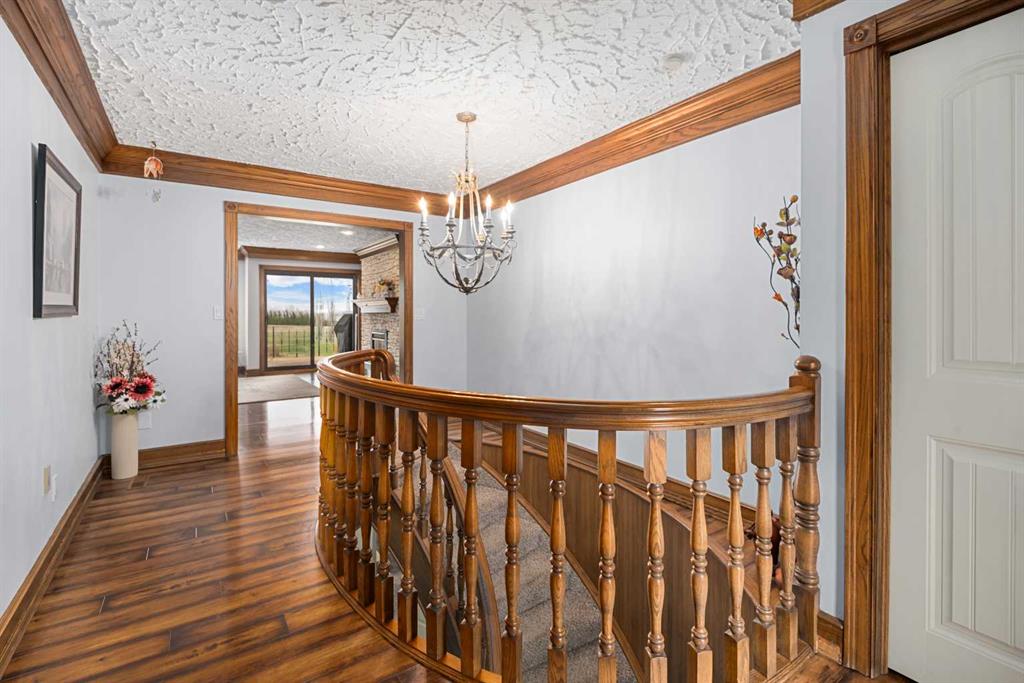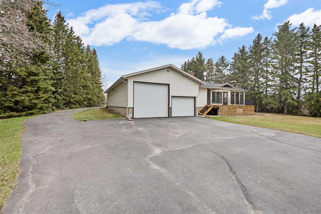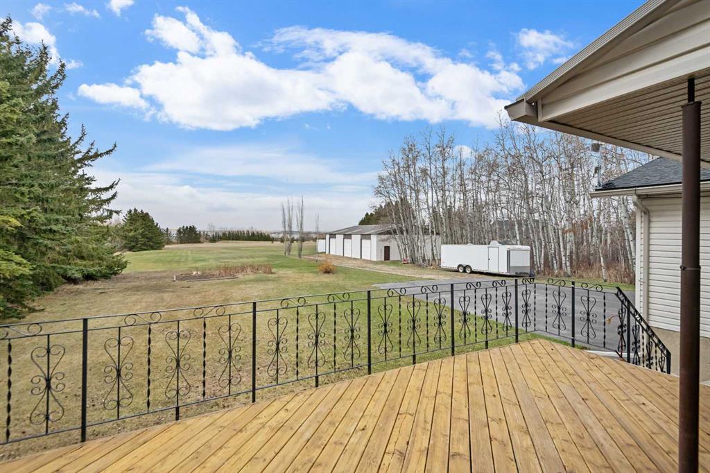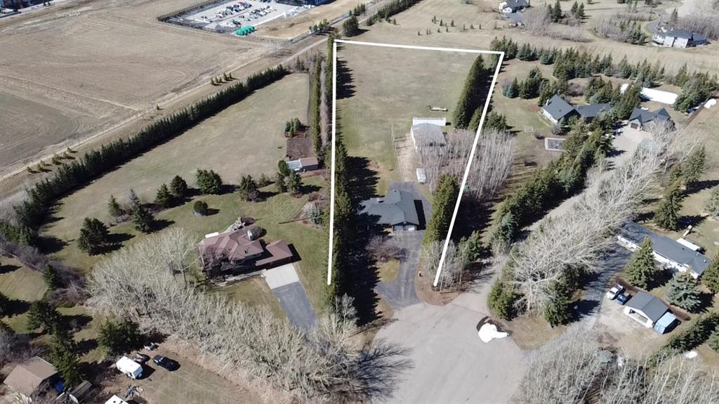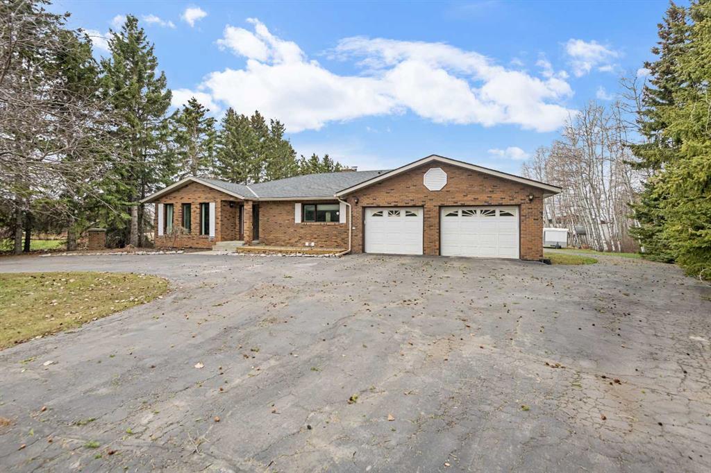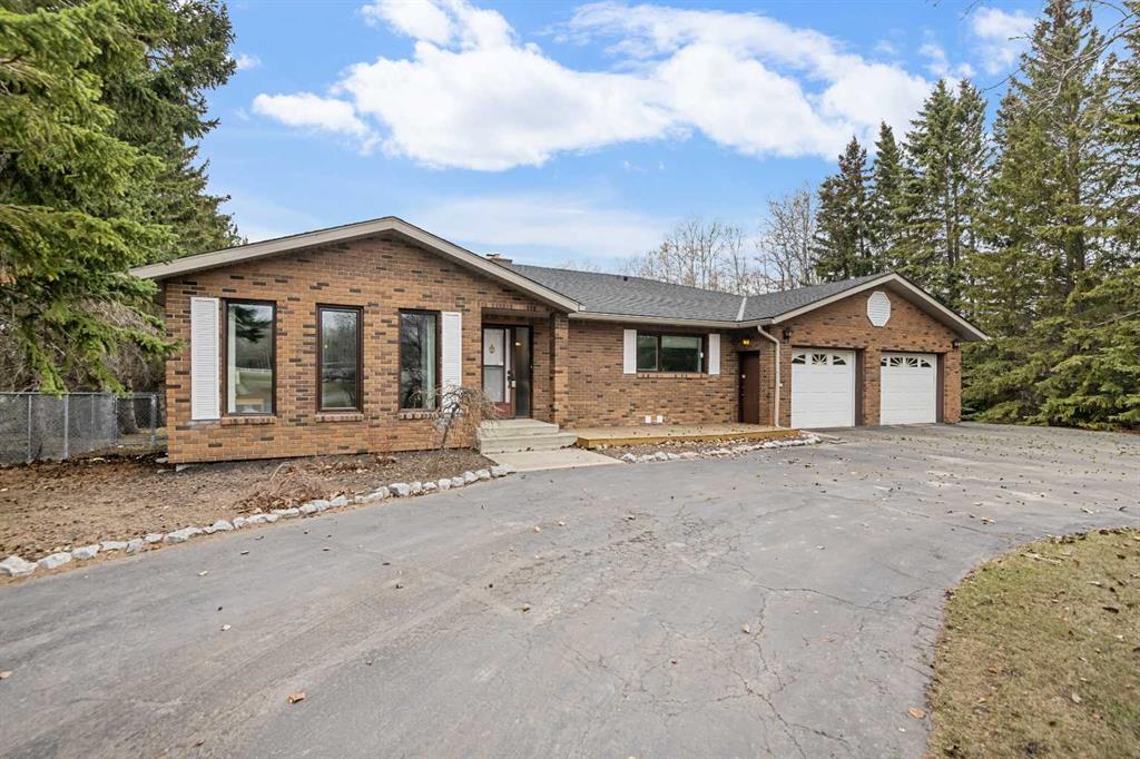 **OPEN HOUSE SUNDAY MAY 2 FROM 1-3PM** Endless opportunities await in this fantastic acreage right within Airdrie’s city limits with fully paved access to your doorstep. Set on 4 acres with beautiful SW exposure, this property captures mountain views, open skies & the kind of space that is hard to find this close to all amenities. Mature trees & established landscaping create a private, welcoming setting from the moment you arrive via the circular driveway. If you have been waiting for the ultimate garage & shop setup, this one delivers right from the start. This property features a double attached 24×25 garage, a rear tandem 24x26x31 garage with an 11’ door, plus an impressive 40×60 shop with concrete floor, three 10×10 doors & skylights that bring in natural light. Whether it is vehicles, equipment, hobbies or storage, there is room here for everything. This custom built bungalow offers over 1800 sq ft up + almost 1700 sq ft down with a warm, traditional layout filled with timeless wood detailing, crown molding & a classic stone fireplace. The kitchen has been updated with newer appliances & lighting & opens into a bright nook & living area that look out toward the trees & mountains. A separate formal dining room easily hosts large gatherings, while a front living room with French doors adds flexibility & additional living space. The main floor has 2 bedrooms, including a spacious primary with a walk in closet & updated 3 pc ensuite. There is also a 4 pc bathroom with jetted tub. A curved staircase leads to the fully developed basement featuring a massive rec room, two additional bedrooms, a 3 pc bathroom & a gym or flex space, making it ideal for families or guests. There is another staircase as well that leads back upstairs. Additional features include a fenced dog run tucked along the east side of the home, plenty of yard space for kids or entertaining & a peaceful cul de sac location. Updates over the years include many main floor windows updated to triple pane, rear garage heater, lights & doors, furnace motor & shingles. Located just steps from the new Airdrie Regional Park, this property adds even more access to walking paths, green space & future amenities, making it a great fit for both hobbyists & families. Close to schools, shopping & all amenities in Airdrie, with Calgary within easy reach. Acreage living like this, with this level of convenience, is hard to find. Check out the 3D walkthrough & video.