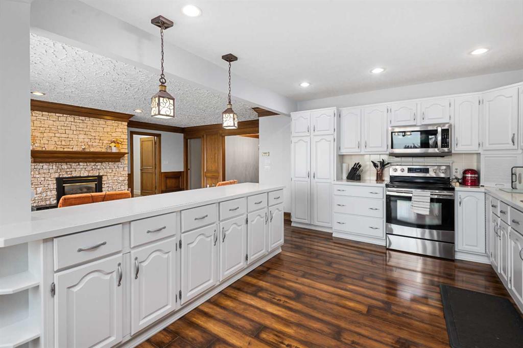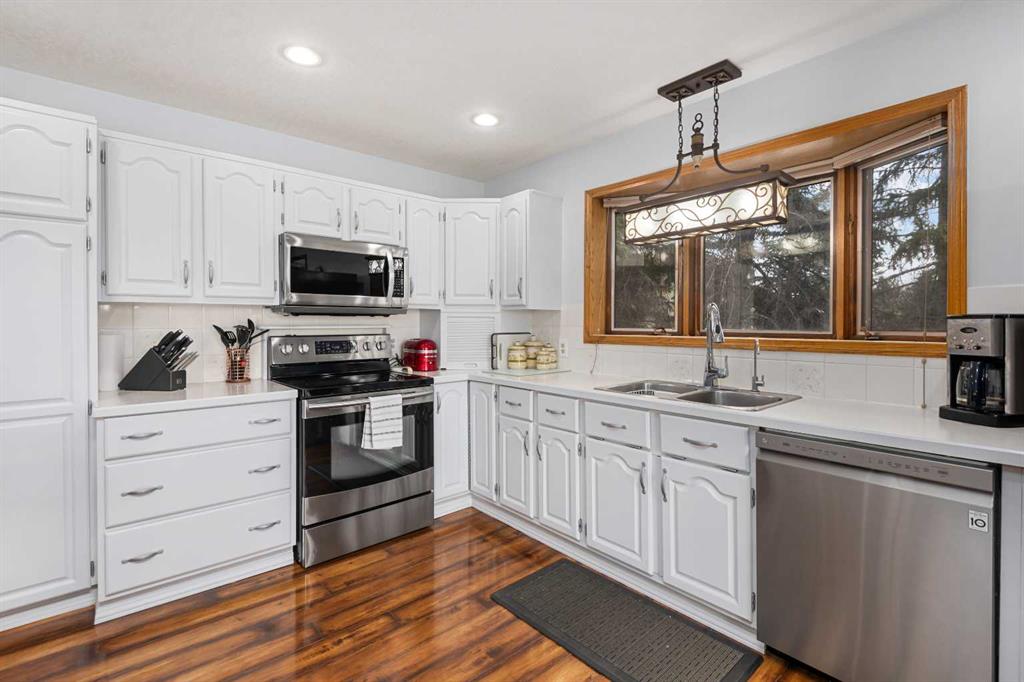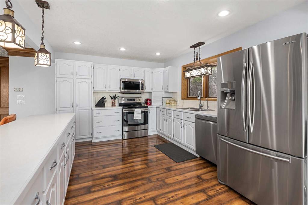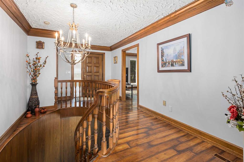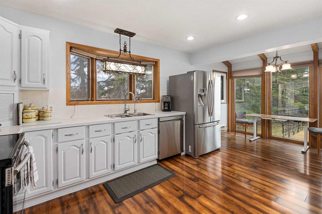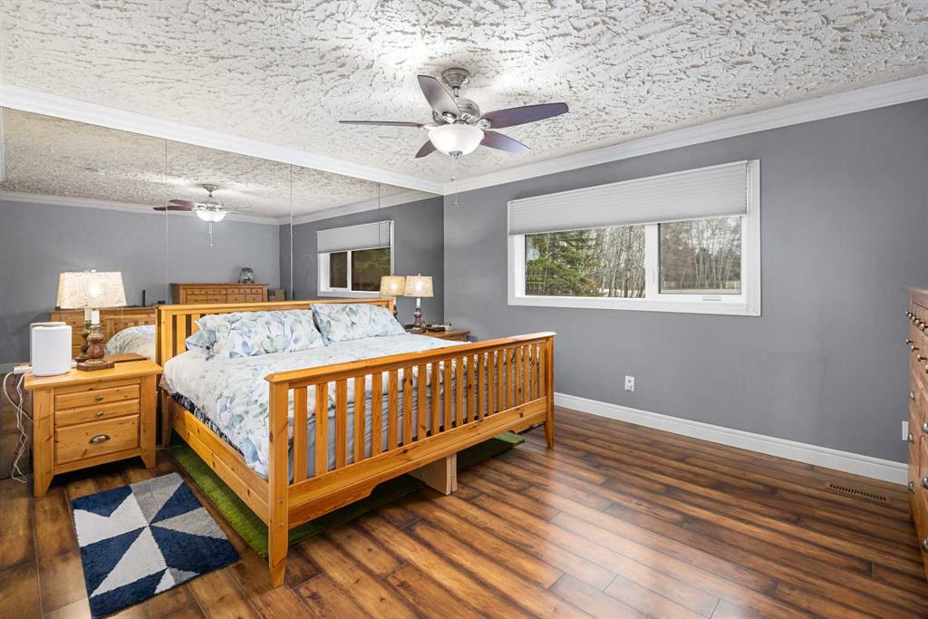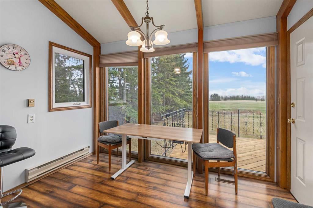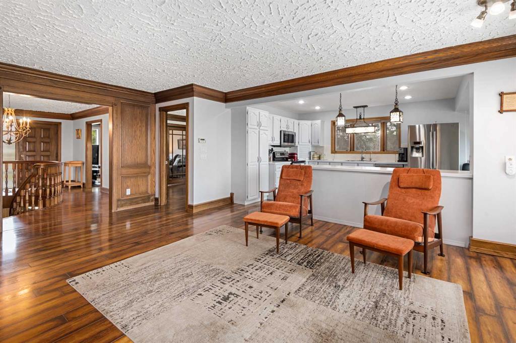 **OPEN HOUSE SUNDAY MAY 2 FROM 1-3PM** Endless opportunities await in this fantastic acreage right within Airdrie’s city limits with fully paved access to your doorstep. Set on 4 acres with beautiful SW exposure, this property captures mountain views, open skies & the kind of space that is hard to find this close to all amenities. Mature trees & established landscaping create a private, welcoming setting from the moment you arrive via the circular driveway. If you have been waiting for the ultimate garage & shop setup, this one delivers right from the start. This property features a double attached 24×25 garage, a rear tandem 24x26x31 garage with an 11’ door, plus an impressive 40×60 shop with concrete floor, three 10×10 doors & skylights that bring in natural light. Whether it is vehicles, equipment, hobbies or storage, there is room here for everything. This custom built bungalow offers over 1800 sq ft up + almost 1700 sq ft down with a warm, traditional layout filled with timeless wood detailing, crown molding & a classic stone fireplace. The kitchen has been updated with newer appliances & lighting & opens into a bright nook & living area that look out toward the trees & mountains. A separate formal dining room easily hosts large gatherings, while a front living room with French doors adds flexibility & additional living space. The main floor has 2 bedrooms, including a spacious primary with a walk in closet & updated 3 pc ensuite. There is also a 4 pc bathroom with jetted tub. A curved staircase leads to the fully developed basement featuring a massive rec room, two additional bedrooms, a 3 pc bathroom & a gym or flex space, making it ideal for families or guests. There is another staircase as well that leads back upstairs. Additional features include a fenced dog run tucked along the east side of the home, plenty of yard space for kids or entertaining & a peaceful cul de sac location. Updates over the years include many main floor windows updated to triple pane, rear garage heater, lights & doors, furnace motor & shingles. Located just steps from the new Airdrie Regional Park, this property adds even more access to walking paths, green space & future amenities, making it a great fit for both hobbyists & families. Close to schools, shopping & all amenities in Airdrie, with Calgary within easy reach. Acreage living like this, with this level of convenience, is hard to find. Check out the 3D walkthrough & video.