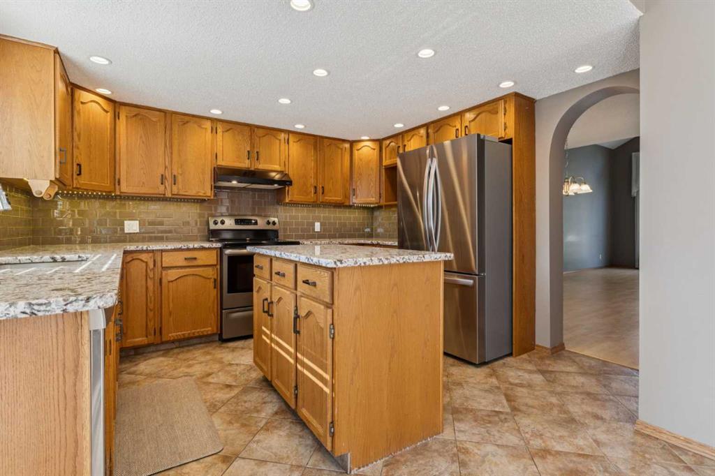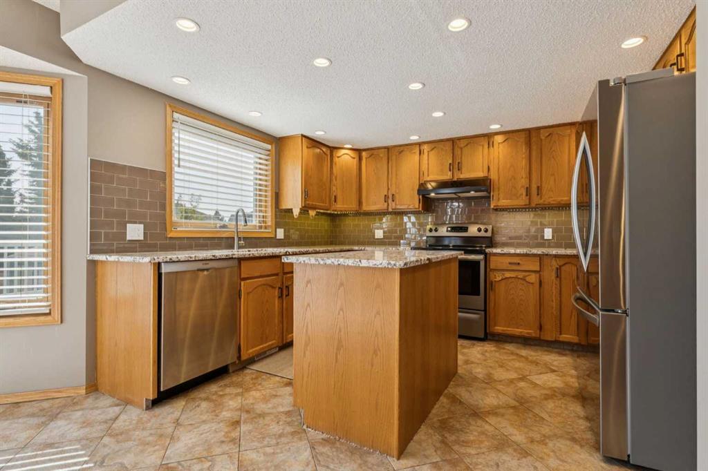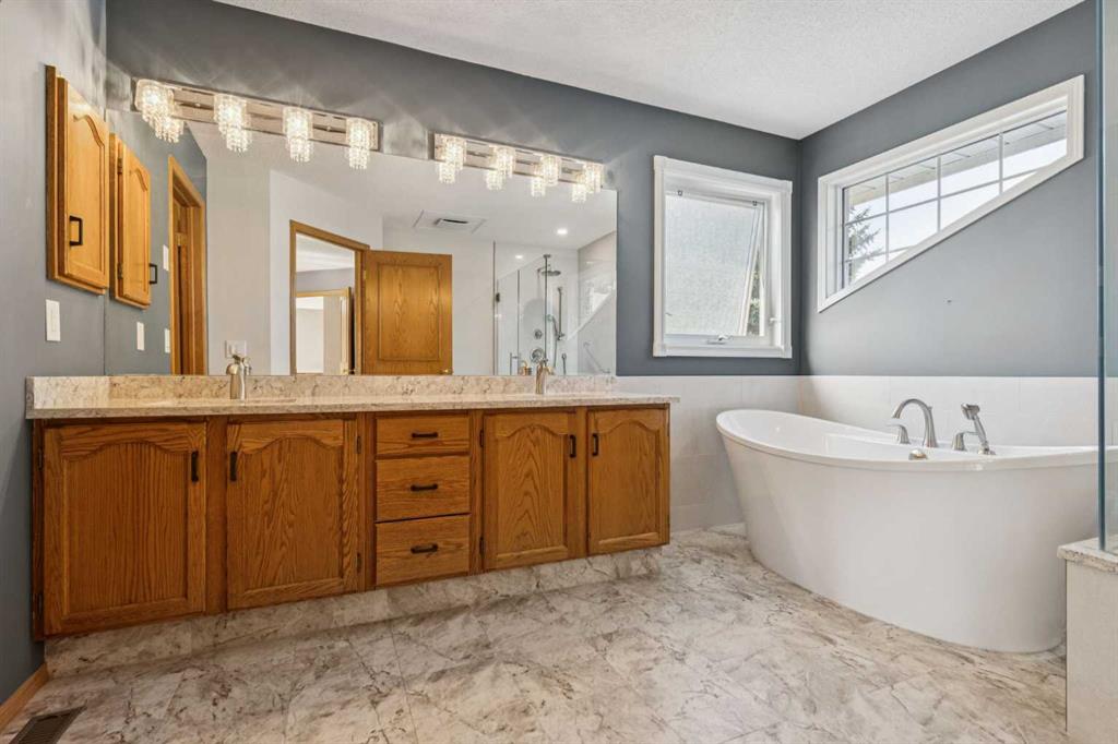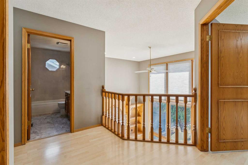 Welcome to this exceptional, spacious, 2 story home with finished basement & located in Edgevalley in the desirable NW community of Edgemont. Siding on green space & conveniently situated within a short walk to the elementary schools, ravines, pathways & Nose Hill Park as well as a short distance to the Foothills & Children’s Hospitals, University, C-Train station & various shopping choices. This home has an inviting main floor with soaring ceilings in the family room adjacent to an updated kitchen with breakfast nook, a huge pantry, granite countertops, under cabinet lighting, newer appliances & a new patio door opening to an oversized south facing deck, perfect for your outdoor enjoyment. The main floor features a grand foyer adjacent to the spacious LR/DR area perfect for entertaining & a den with closet as well as laundry area & updated 2 piece powder room. The upper floor contains 3 bedrooms with the oversized primary bedroom open to a beautifully updated, spa-like 5 piece ensuite bath having a soaker tub, stand alone shower & extra large walk-in closet. The main 4 piece bath is shared by the additional 2 bedrooms & is also updated. The lower level is developed with a expansive media/games room, hobby room with closet as well as a 3 piece bath & plenty of storage space. Some of the windows in the home have been replaced, the exterior painted & the back yard nicely re-landscaped. This family home is a must view for anyone looking to enjoy all the amenities of this desirable NW community!