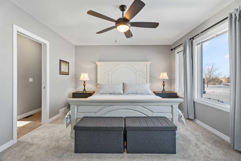 Upstairs, the layout is both functional and inviting. The primary retreat captures stunning west-facing views, complete with a luxurious 5-piece ensuite and walk-in closet. The bonus room, with vaulted ceilings and positioned at the back of the home, offers a perfect place to relax while taking in the same incredible scenery, from inside or on the balcony, morning, noon, or sunset. Laundry days are easier here as you will find the laundry room right at the top of the stairs.