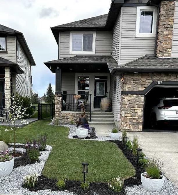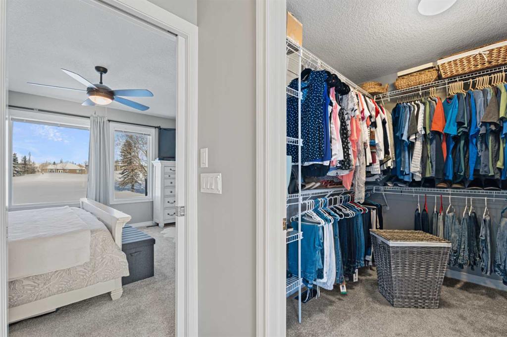 The landscaping has been beautifully redone, while inside you’ll find new flooring throughout the upper level and stairs, updated lighting and the added comfort of central air conditioning. The heated and insulated double car garage is another feature—perfect for Alberta winters, whether you’re parking, storing, or working on projects year-round.