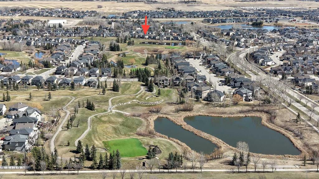This truly exceptional, meticulously maintained two-storey, 3 bedroom home in Okotoks backs directly onto the golf course, offering uninterrupted green space, wildlife, and views that include the mountains.