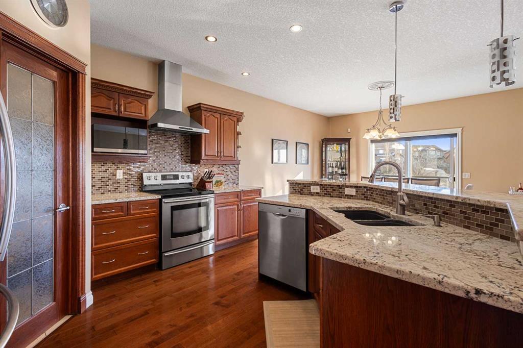 *Open house Sat Jan 31 and Feb 1 from 1pm-3pm* Welcome home! Experience refined living in the exclusive and desirable neighborhood of Hanson Ranch. SET on an EXTRA-DEEP, SE-facing WALKOUT LOT BACKING DIRECTLY ONTO RAVINE offering PRIVACY and a true connection to nature. ALL NEW ROOF, fresh exterior paint, professionally sealed driveway, and many other updates were completed in 2025. Additional highlights include CENTRAL A/C, OVERSIZED DOUBLE GARAGE with plenty of built-in storage, NAT GAS FIREPLACES, and expansive windows with year-round UNOBSTRUCTED NATURE VIEWS on all three levels. The main level is bright and open, featuring hardwood floors, a spacious living room with a fireplace, and large windows showcasing the ravine views. The Chef’s dream kitchen flows seamlessly into the dining and living areas, offering granite countertops, stainless steel appliances, ample cabinetry, and a large island—perfect for everyday living and entertaining. Adding convenience is a MASSIVE walk-through pantry and mudroom/laundry area that leads to the oversized insulated garage. Upstairs features a VAULTED bonus room with a cozy FIREPLACE supplemented by LUTRON enabled dimmers for added ambience. Wake up every morning to picturesque NATURE VIEWS in the primary suite which connects to a large walk-in closet and 5-pc ensuite. Completing the upper floor are two bright secondary bedrooms and a spacious full bath. Experience the perfect multi-generational setup in this bright, illegal suite walkout basement. Highlights include a spacious rec room, gym area, and a 4th bedroom serviced by a full bath. The kitchenette is equipped with a stove and hood fan, with a mechanical room already roughed-in for a stackable laundry set. With its high ceilings and separate walkout entrance, this non-conforming suite offers privacy and comfort for extended family or long-term guests. Outdoors is where this property truly shines. The EXTREMELY RARE 164-FT DEEP LOT backs onto natural reserve with no rear neighbours, offering privacy, mature trees, and a backdrop that changes beautifully with the seasons. The maintenance free deck & patio are ideal for summer evenings and weekend gatherings, while the yard provides space for kids, pets, or quiet relaxation. This is a MUST-SEE property that won’t last!