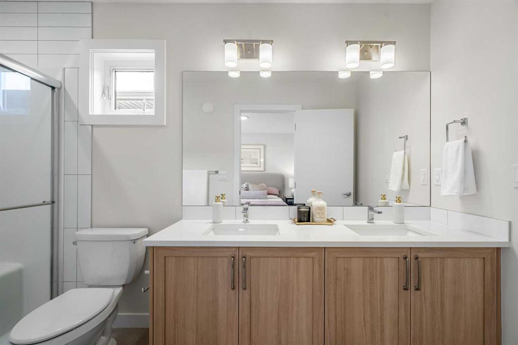 Welcome to The Edward by Partners Homes in Keystone Creek, a former showhome located directly across from green space and featuring a fully developed 2 bedroom, 2 bathroom legal basement suite with a private side entrance. This quick possession home offers exceptional flexibility, strong income potential, and long term value in North Calgary. Designed for homeowners and investors alike, the upper level includes 3 bedrooms, a main floor flex room, and 3 full bathrooms, including a full bathroom on the main level with a fully tiled walk in shower, making it ideal for guests or multi generational living. As a professionally designed showhome, this property stands apart from typical new construction. It showcases upgraded finish selections, custom window coverings, and thoughtful design details throughout. The main floor offers excellent flow, with a front flex room positioned beside the full bathroom. At the rear of the home, the kitchen anchors the open concept layout and features full height two tone cabinetry, upgraded quartz countertops, and enhanced lighting. Clean sightlines connect the kitchen, dining, and living areas, creating a functional and inviting space for everyday living and entertaining. A rear mudroom adds practical storage, and a barbeque gas line is already installed for outdoor use. Upstairs, the primary suite includes a walk in closet and a private ensuite with dual sinks and a tiled walk in shower. Two additional bedrooms are complemented by a centrally located bonus room, offering flexible space for a media room, workspace, or second family area. Upper level laundry and upgraded carpet with premium underlay enhance everyday comfort. The fully developed legal basement suite is a true differentiator. Finished with luxury vinyl plank flooring and its own private entrance, it provides excellent rental income potential or a strong mortgage helper opportunity. Separate mechanical rooms for the basement and the main and upper levels offer added independence and efficiency between living spaces. Additional highlights include quartz surfaces throughout, knockdown ceilings, 9 foot basement ceilings, a 2.5 ton air conditioner, exterior soffit lighting, completed front and back landscaping, and a rear 2 car gravel parking pad. Keystone Creek offers parks, wetlands, walking paths, and convenient access to Stoney Trail, Deerfoot Trail, CrossIron Mills, and YYC International Airport. A former showhome with a legal suite, side entrance, and green space location is a rare opportunity in today’s North Calgary market!