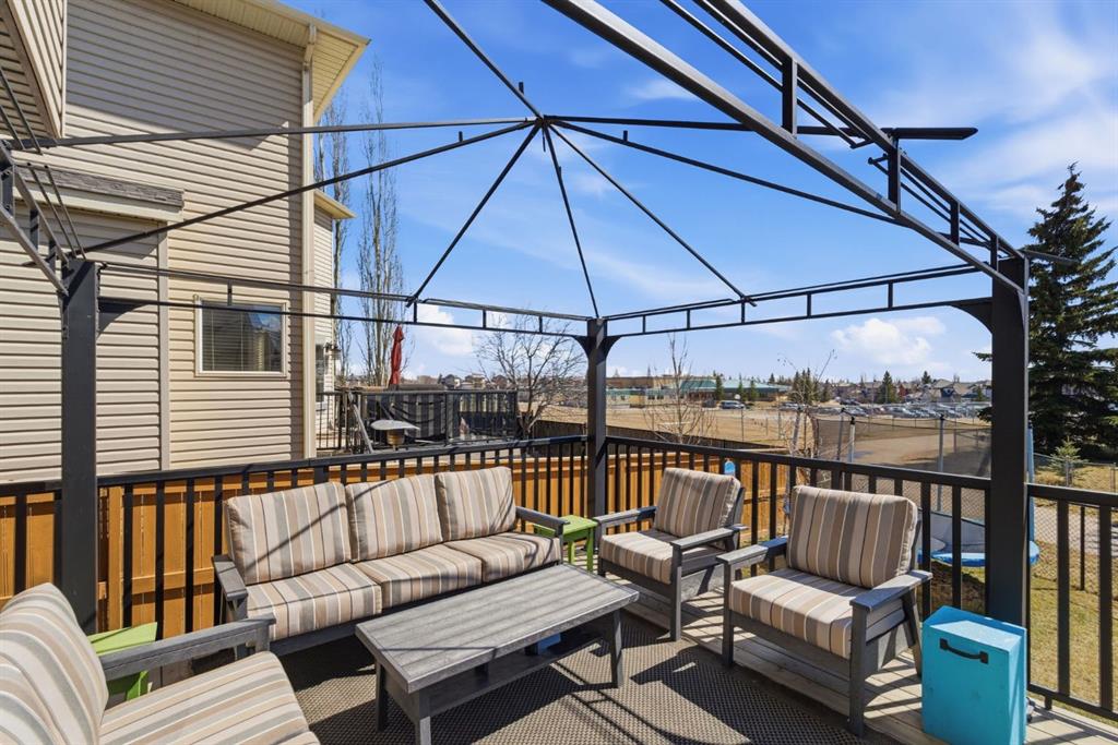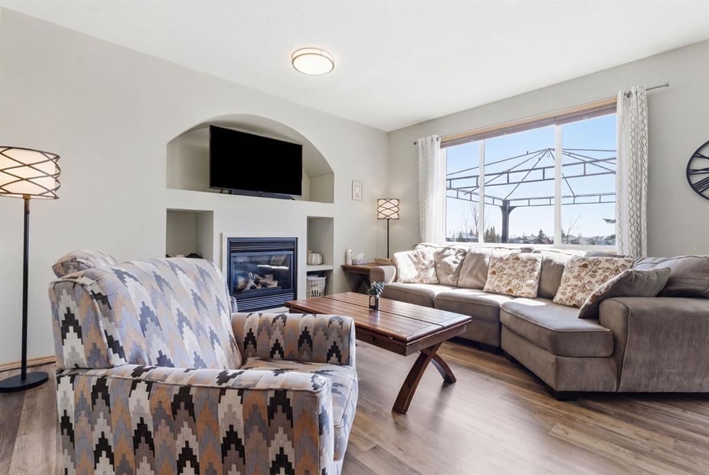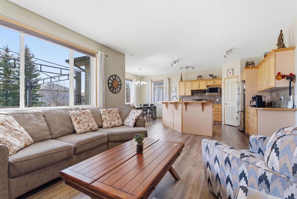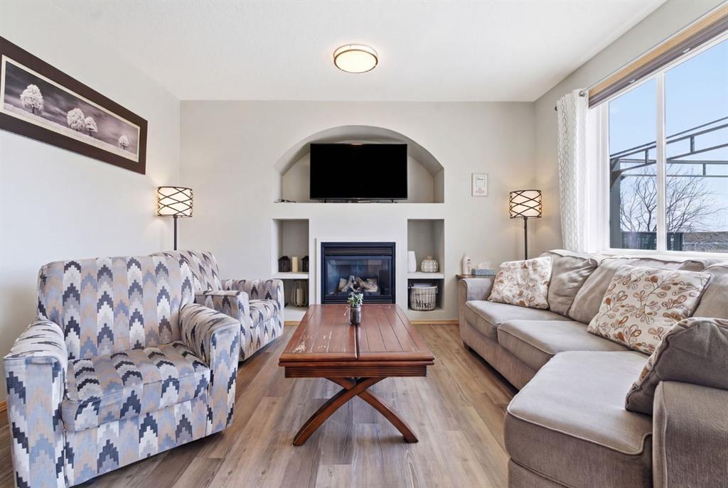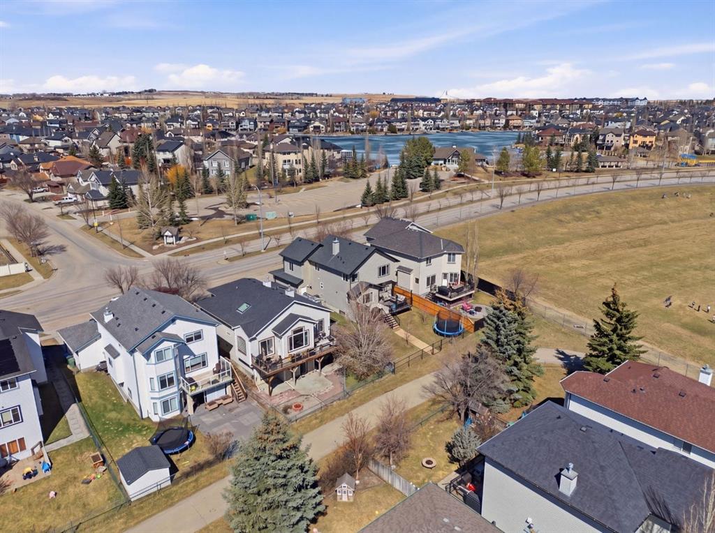 Welcome to this beautifully maintained 2-storey home in the highly sought-after lake community of Crystal Shores in Okotoks, offering the perfect blend of space, functionality, and lifestyle. With nearly 2,000 sq ft above grade and an additional 800+ sq ft of developed basement space, this home is designed with families in mind. From the moment you step inside, you’ll appreciate the bright and open layout, highlighted by large windows that flood the home with natural light and a warm, inviting living room complete with a cozy fireplace.The kitchen is both spacious and functional, featuring ample cabinetry, a central island with seating, and a seamless connection to the dining area ideal for everyday living and entertaining. Just off the dining space, step out onto the oversized back deck, perfectly set up for both lounging and outdoor dining, making it an extension of your living space in the warmer months. A convenient main floor laundry room and a well-placed powder room complete this level.