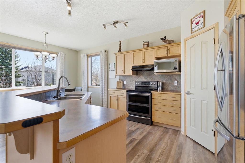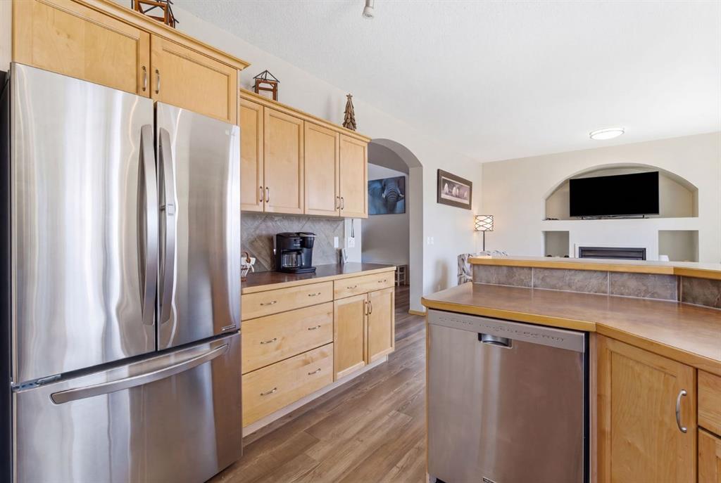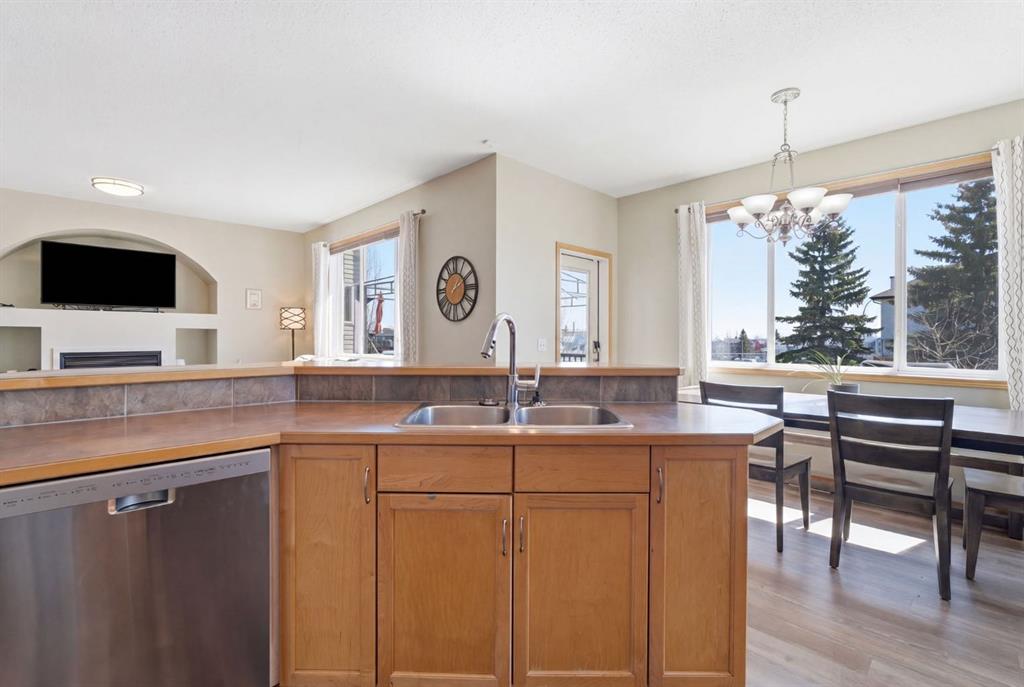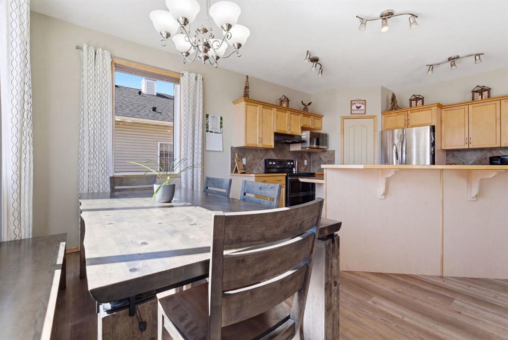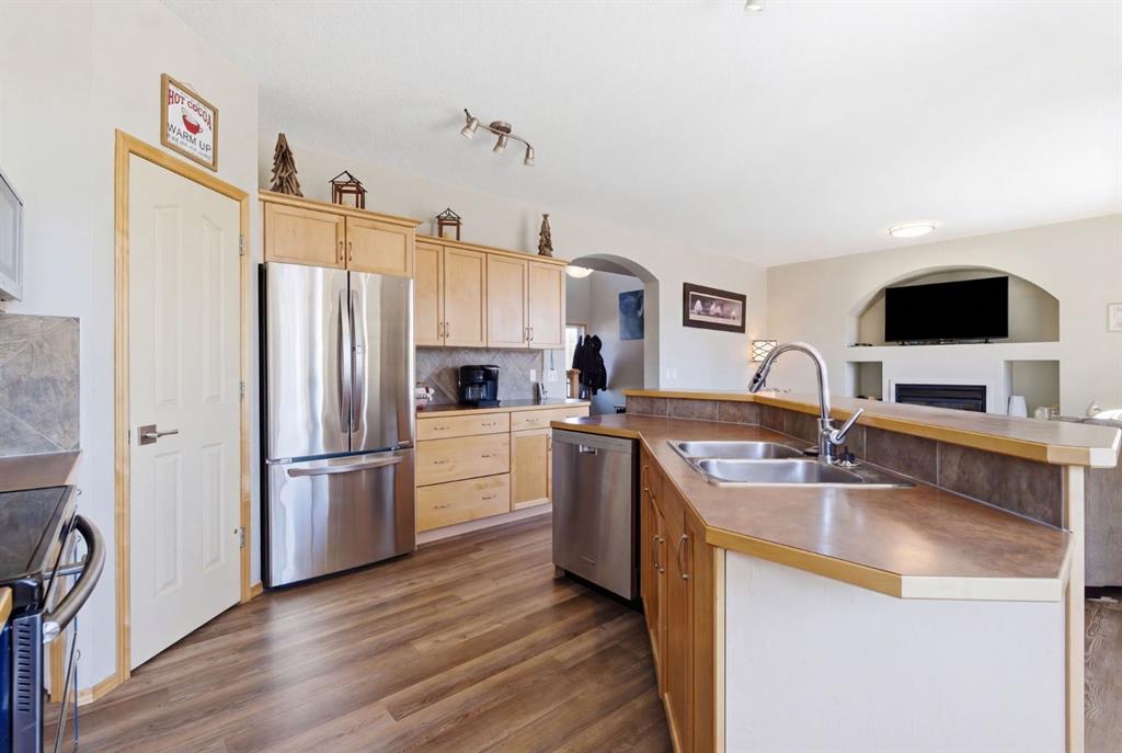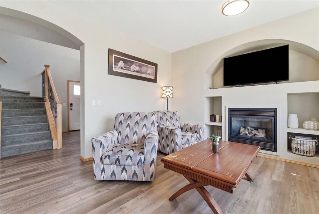Welcome to this beautifully maintained 2-storey home in the highly sought-after lake community of Crystal Shores in Okotoks, offering the perfect blend of space, functionality, and lifestyle. With nearly 2,000 sq ft above grade and an additional 800+ sq ft of developed basement space, this home is designed with families in mind. From the moment you step inside, you’ll appreciate the bright and open layout, highlighted by large windows that flood the home with natural light and a warm, inviting living room complete with a cozy fireplace.The kitchen is both spacious and functional, featuring ample cabinetry, a central island with seating, and a seamless connection to the dining area ideal for everyday living and entertaining. Just off the dining space, step out onto the oversized back deck, perfectly set up for both lounging and outdoor dining, making it an extension of your living space in the warmer months. A convenient main floor laundry room and a well-placed powder room complete this level.