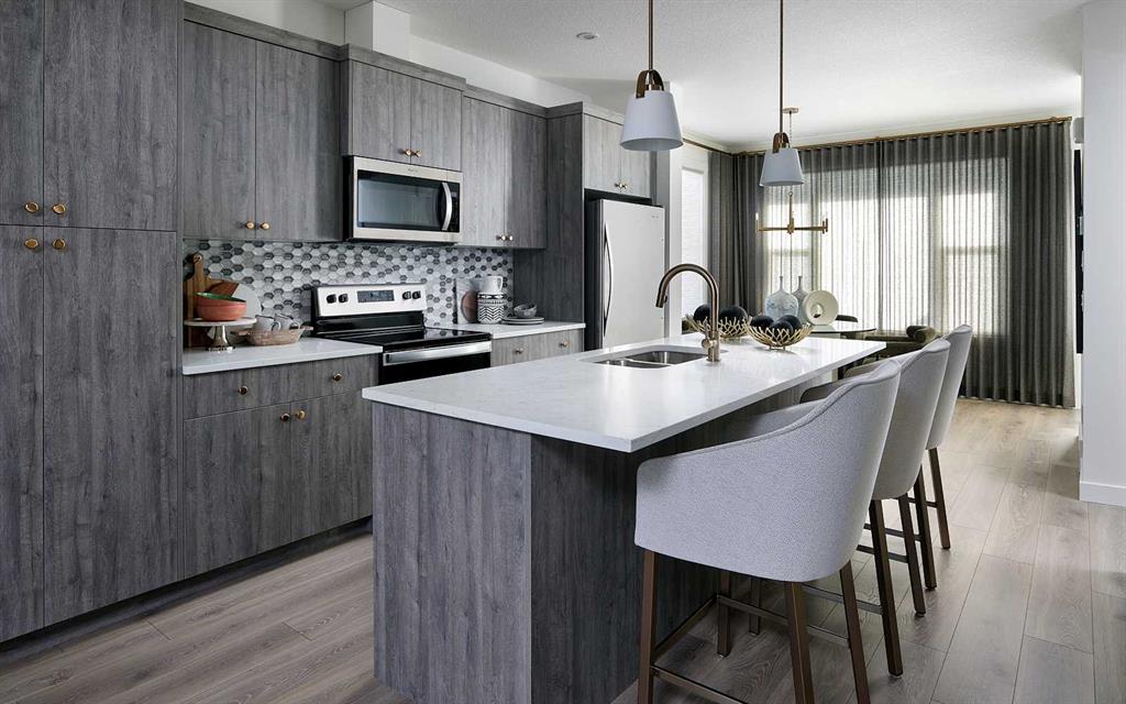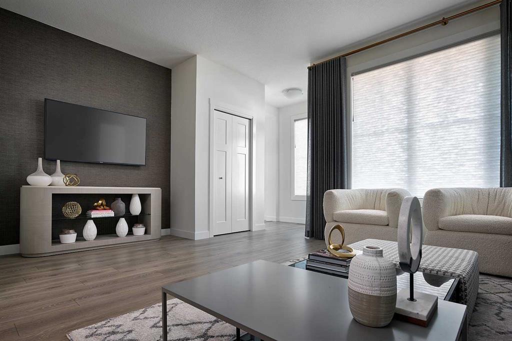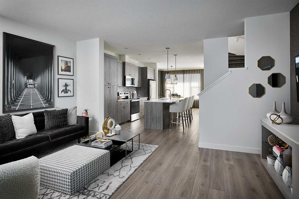 The Sequoia is one of Brookfield Residential’s most sought-after semi-detached floorplans, offering nearly 1,500 sq ft of well-designed living space across two levels. This thoughtfully laid-out home features 3 bedrooms, 2.5 bathrooms, and two distinct living areas, ideal for modern family living. The main floor showcases an open-concept design with a centrally positioned kitchen that seamlessly connects the dining area and front great room. The upgraded kitchen includes a full suite of built-in appliances, highlighted by a sleek chimney-style hood fan. At the front of the home, the spacious great room is framed by a wall of windows, filling the space with natural light throughout the day. Toward the rear, the dining area overlooks the backyard, and a convenient 2-piece bathroom completes the main level. Upstairs, an open railing leads to a versatile bonus room that separates the primary suite from the additional bedrooms, providing added privacy. The primary bedroom, measuring approximately 11′ x 13′, features a walk-in closet and a private ensuite with a tiled walk-in shower. Two additional bedrooms, a full bathroom, and a dedicated laundry room complete the upper level. The basement remains undeveloped, offering a blank canvas for future customization. Outside, the northwest-facing backyard is well-positioned to capture ample sunlight, and the home includes a private yard along with a double parking pad. This brand-new home comes with builder warranty coverage as well as the Alberta New Home Warranty for added peace of mind. Please note: Photos are from a show home and may not reflect the exact finishes of the property for sale.