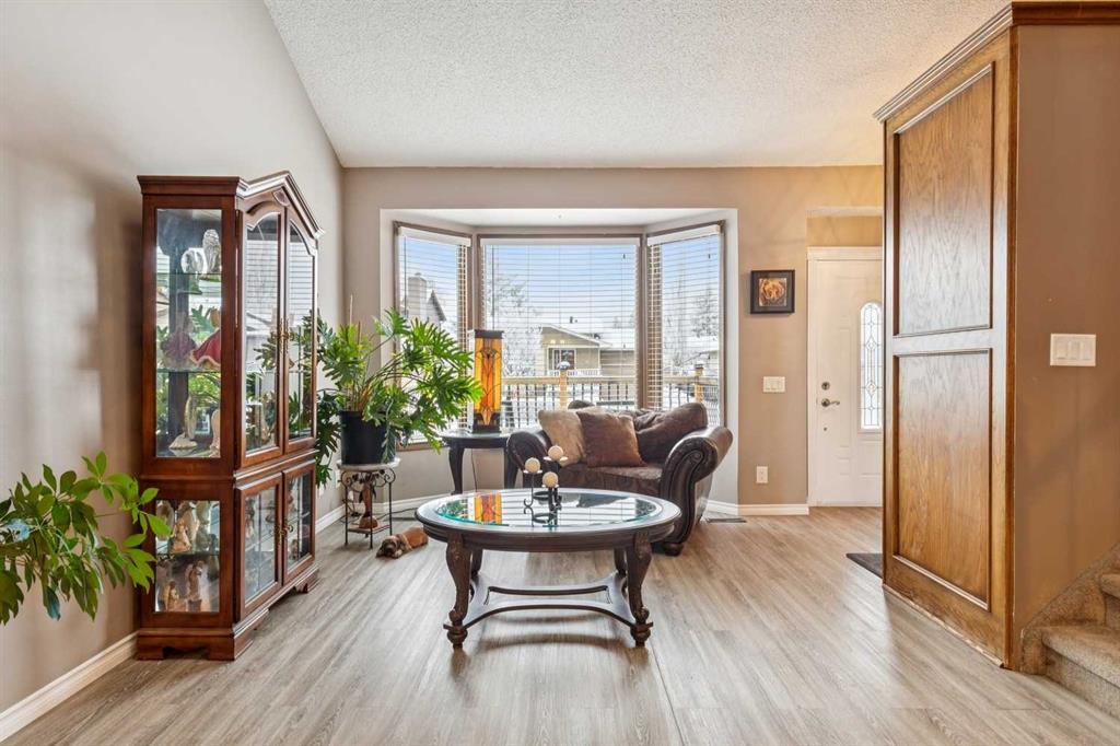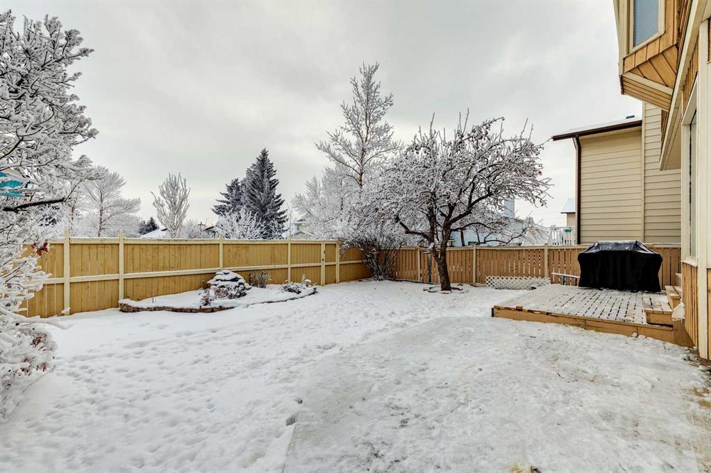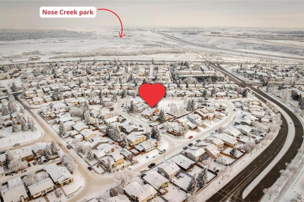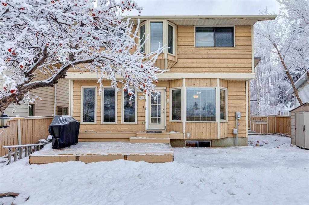 Welcome to this beautifully maintained & loved (only the 2nd owners!) 2-storey home backing directly onto greenspace in the desirable community of Beddington Heights, offering over 2,600 sqft of fully developed living space and an exceptional combination of privacy, comfort, and family-friendly living. Enjoy your morning coffee on the charming front porch (cedar). The bright and welcoming main floor showcases a spacious front entrance with new exterior door 2 years ago, new luxury vinyl plank flooring (1 year old), vaulted ceilings with skylights, updated luxury vinyl plank flooring, a spacious living room with a bay window, and a formal dining area that flows seamlessly into the heart of the home. The well-appointed kitchen features an abundance of cabinetry, beautiful black stanless steel appliances (fridge and stove 3 years old), black double sink, beautfiul hood fan, island seating, and a sunny eating nook set within a bay window overlooking the beautifully landscaped backyard, while the adjacent family room is anchored by a charming brick wood-burning fireplace, creating the perfect space for everyday living and cozy evenings. Completing the main level are a convenient 2-piece bathroom (updated 2 years ago), main-floor laundry, and direct access to the double attached garage, which is insulated, drywalled, and heated (overhead door is approximately 2 years old). Upstairs, you will find 3 generously sized bedrooms and 2 full bathrooms, including a spacious primary retreat with walk-in closet and a large ensuite complete with a separate shower and relaxing soaker tub, all enjoying tranquil views of the greenspace behind. The fully developed basement is an entertainer’s dream, offering a large recreation room with custom western-style window shutters, a western-inspired wet bar with sink, and a pool table with accessories included, creating a true pub-style atmosphere ideal for hosting family and friends, along with a bathroom rough-in, cold room, and plenty of storage. Step outside to the fully fenced backyard, beautifully landscaped and featuring a lovely crabapple tree, a two-tiered deck ideal for summer BBQs and outdoor dining, lots of bird activity, and a rear gate in the back fence providing direct access to the greenspace behind the home. Ideally located in Beddington Heights, this home is surrounded by excellent amenities including nearby schools, playgrounds, walking paths, and shopping, with many parks within walking distance, easy access to Deerfoot Trail and Stoney Trail, and close proximity to public transit, recreation facilities, and everyday conveniences. This is a rare opportunity to enjoy a spacious family home in a well-established Calgary neighbourhood while backing directly onto greenspace, offering privacy, lifestyle, and long-term value. Furnace and shingles are from 2011.