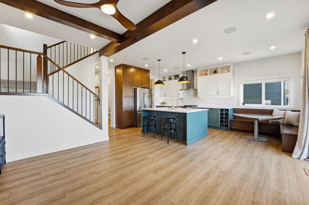 Welcome to 16 Key Cove in the Brand New Community of Key Ranch, Airdrie! Where luxury and functionality come together in perfect harmony. Built in 2024, this stunning home blends high-end design with everyday comfort and trust us, the photos don’t do it justice! From the moment you step inside, you’ll fall in love with the spacious front entry and rich flooring that flows seamlessly through the main level. The open-concept layout features an inviting living area, highlighted by gorgeous wood-beam ceiling details and a floor-to-ceiling fireplace that makes an incredible statement. The chef-inspired kitchen is a true showstopper, complete with rich cabinetry, upgraded countertops, premium appliances, a custom dining nook, and even a built-in wine rack. The walk-through pantry connects effortlessly to a generous mudroom for added convenience. Step outside to enjoy a fully landscaped backyard, featuring a large deck and new fencing, perfect for relaxing or entertaining guests. Upstairs, a central bonus room provides the ideal space for movie nights or homework sessions. You’ll also find upstairs laundry, two spacious secondary bedrooms, and a luxurious primary suite that truly impresses. The spa-inspired 5-piece ensuite offers a walk-in tile shower, soaker tub, dual vanities, and a large walk-in closet. Your private retreat awaits! Additional features include central air conditioning, epoxy-coated garage flooring, and thoughtful upgrades throughout. This home truly has it all: style, comfort, and unbeatable value in one of Airdrie’s most exciting new communities. See for yourself why 16 Key Cove should be your next address!
