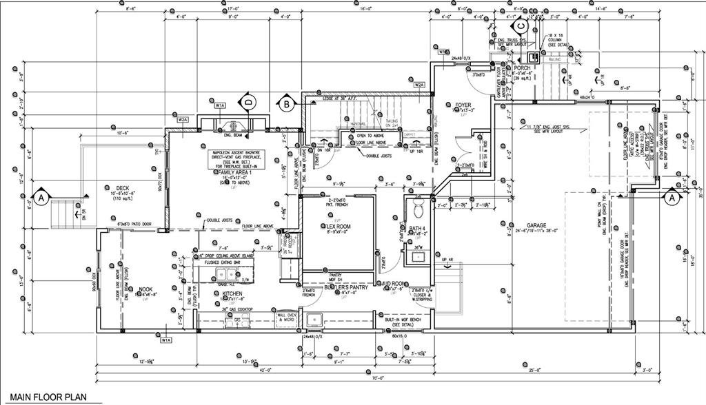 The main floor is finished with hardwood flooring and hardwood vents, complemented by 9-foot ceilings and 8-foot doors for a clean, upscale feel. The dream kitchen is a standout, featuring custom cabinetry, quartz countertops, a built-in wall oven and microwave, gas cooktop, oversized fridge/freezer, and dishwasher. A large island with eating bar is highlighted by a dramatic ceiling detail, while the walk-through pantry with MDF shelving and butler’s pantry add exceptional storage and functionality. The family room is anchored by a gas fireplace, creating a warm and welcoming gathering space. A mudroom with built-in bench and hooks completes the main level with everyday convenience.
