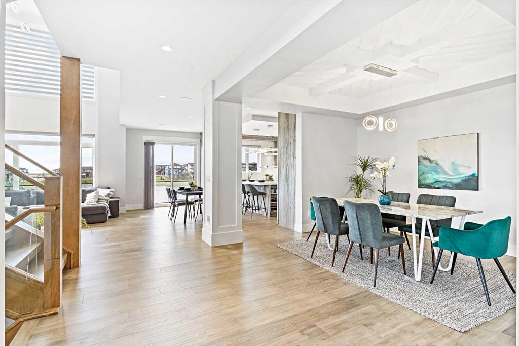 The main and upper floors offer four bedrooms and three-and-a-half bathrooms, ideal for families seeking both space and functionality. The home impresses immediately with an open-to-below living room and an open-to-above bonus room, creating a striking sense of volume, light, and connection between levels. A cedar and oak upgrade package, paired with black and chrome hardware throughout, adds warmth and contemporary contrast, while an enhanced lighting package ensures the home feels bright and inviting at every turn.