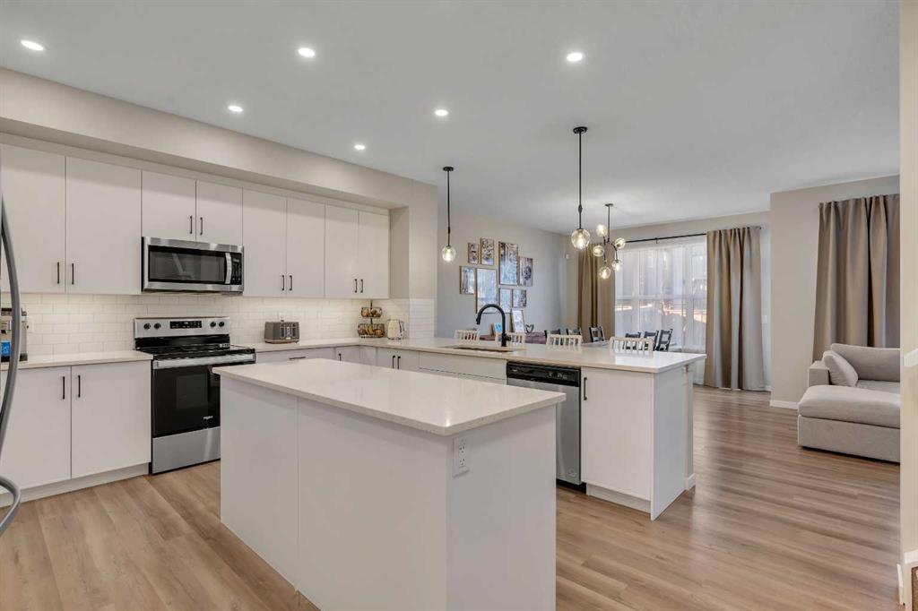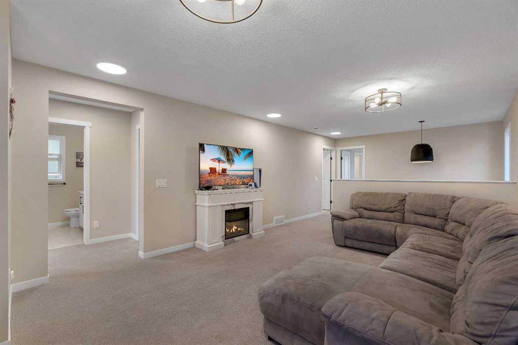 Welcome to 160 Magnolia Terrace SE. A stunning 5-bedroom, 3.5-bathroom home that perfectly blends luxury, comfort, and everyday functionality. From the moment you arrive, you’ll appreciate the pleasant curb appeal and inviting presence of this beautifully maintained residence. Step inside to a spacious front entry with extra closet space, setting the tone for a thoughtfully designed home. Luxury vinyl plank floors flow throughout the main living areas, complemented by a current, modern colour palette that feels both warm and timeless. The heart of the home is the large gourmet kitchen, featuring granite countertops, a centre island, breakfast bar, ample cabinetry, and a walk-through pantry connecting directly to the mudroom—perfect for busy family life. The living room is anchored by a cozy gas fireplace, while the spacious nook easily accommodates family meals and entertaining. The main floor also offers a dedicated office/flex room, ideal for working from home. Upstairs, you’ll find an impressive layout with four bedrooms, a full laundry room, and still plenty of space for a large bonus room—a rare find in homes of this size. The primary retreat is a true escape, complete with a luxurious 5-piece ensuite, walk-in closet, and the added privacy of a separate door to the toilet—an uncommon and highly desirable feature. Three additional generously sized bedrooms share a well-appointed 4-piece bathroom. The 9-foot basement ceilings open up endless possibilities. Enjoy a finished recreation room, plus an additional bedroom and bathroom, making it ideal for guests, teens, or extended family. Outside, the spacious backyard invites you to relax, entertain, and enjoy the outdoors. Added comforts include central air conditioning, ensuring year-round comfort. Located in the sought-after lake community of Mahogany, residents enjoy access to two private beaches, scenic wetlands, walking pathways, and an abundance of nearby schools, parks, playgrounds, shopping, and dining.