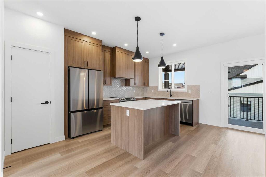 A sophisticated award winning END Unit 3-storey a Vesta Elevate Collection nested in Cooper’s Crossing, an 13th-time recipient of Airdrie’s “Best Community” award. This modern masterpiece seamlessly blends contemporary architecture with upscale interior finishes, offering a versatile layout that includes 3 bedrooms, 2.5 bathrooms, and a ground-floor flex room perfect for a home office or gym. The heart of the home is a bright, open-concept main floor anchored by a gourmet kitchen featuring full-height cabinetry, sleek modern finishes, and generous prep space that flows effortlessly into the dining and living areas. Upstairs, the deluxe primary suite serves as a private retreat, complemented by secondary bedrooms that are impressively oversized compared to typical townhome designs. Beyond the stylish interior, this home boasts a rare and highly coveted parking setup: a double attached garage plus two additional private driveway stalls. Perfectly positioned across from Cooper’s Town Promenade, you’ll enjoy walkable access to Starbucks, Save-On-Foods, and local dining, while nearby parks and school. This the ultimate low-maintenance sanctuary for professionals and families alike who refuse to compromise on convenience for “elevated” living.