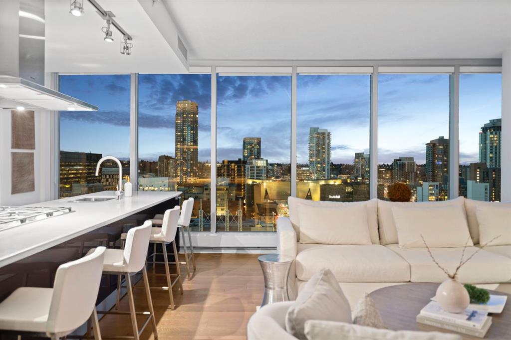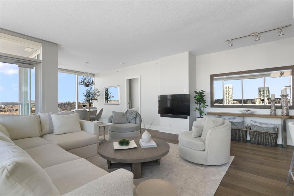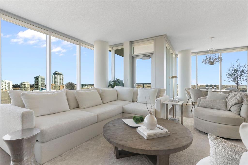 Experience elevated downtown living in this stunning 16th-floor residence at the iconic Arriva Tower. Spanning 1,367 sq. ft., this bright and airy corner unit offers 2 bedrooms, 2 bathrooms, and uninterrupted east facing views through floor to ceiling windows that capture the morning light and stretch across the city skyline and Bow River valley. The orientation provides an incredible sense of privacy and tranquility, paired with sweeping, ever changing vistas.